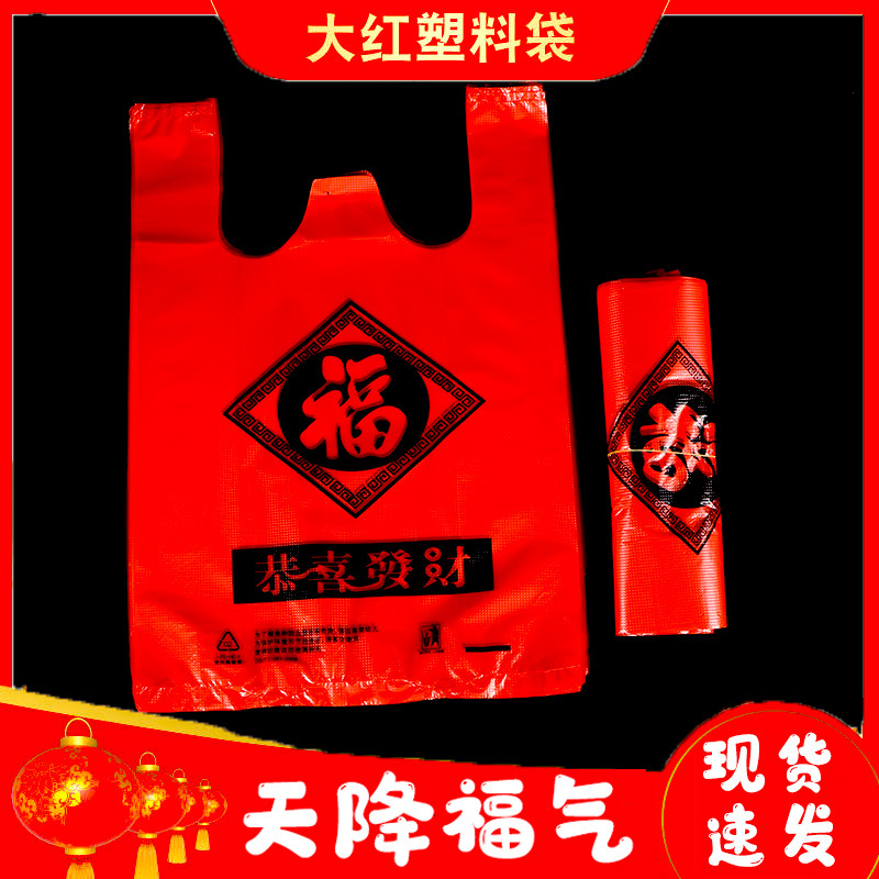 赤いビニール袋の福の字の手提げ袋はスーパーマーケットのショッピングバッグを厚くして結婚の満月の贈り物の袋の卸売りを祝います。
