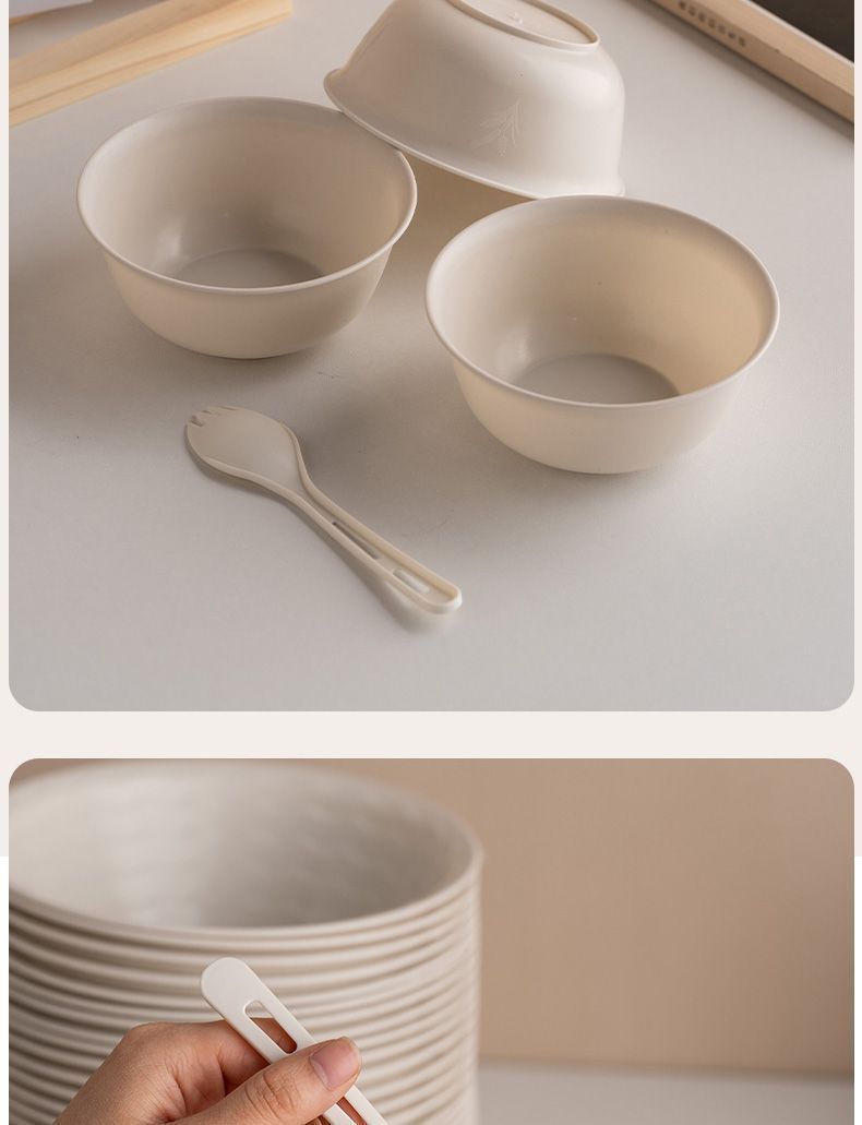 籾殻使い捨て食器食器箸セットスプーンコップ分解可能食品級会食家庭用ピクニック10人分