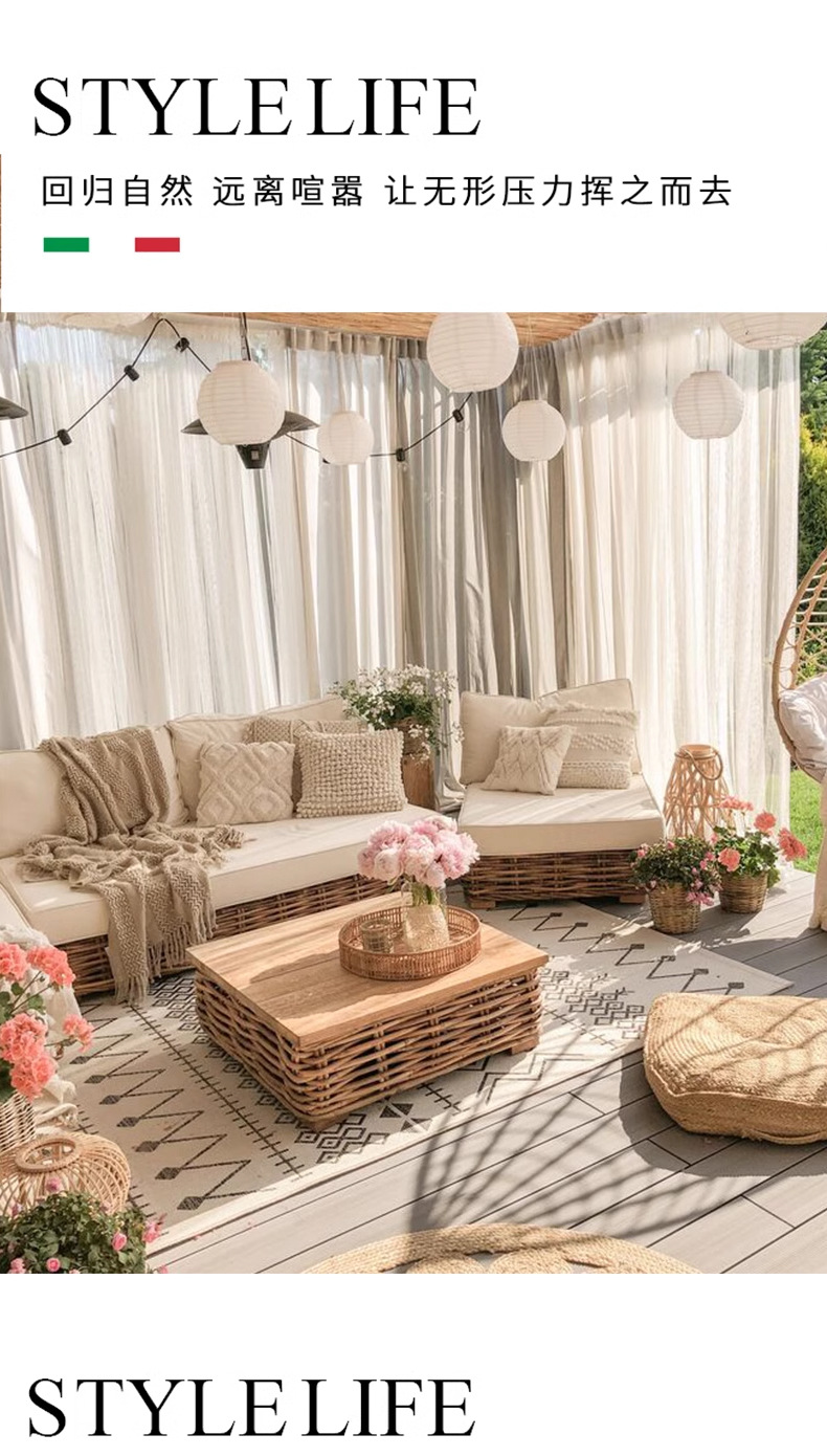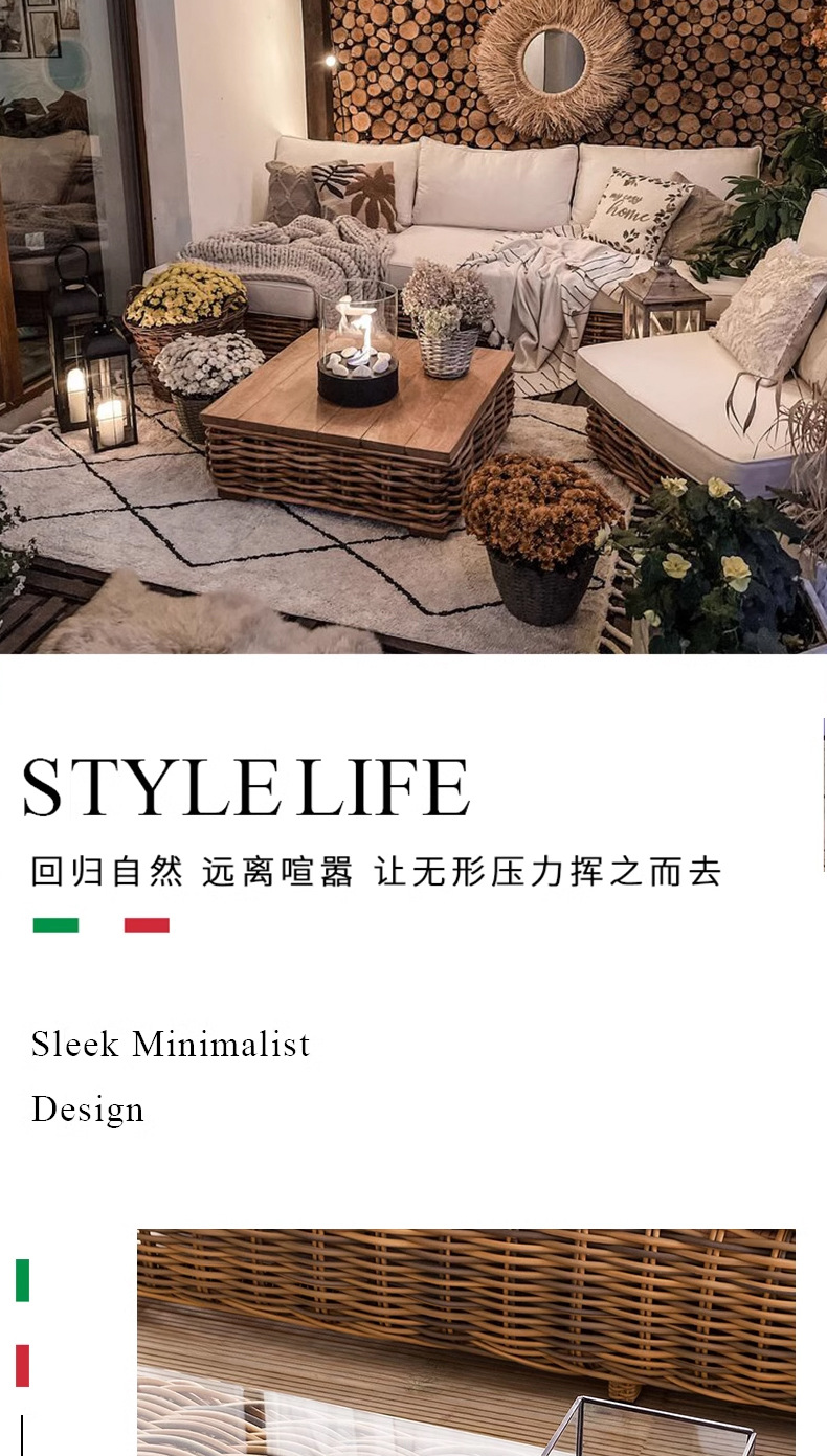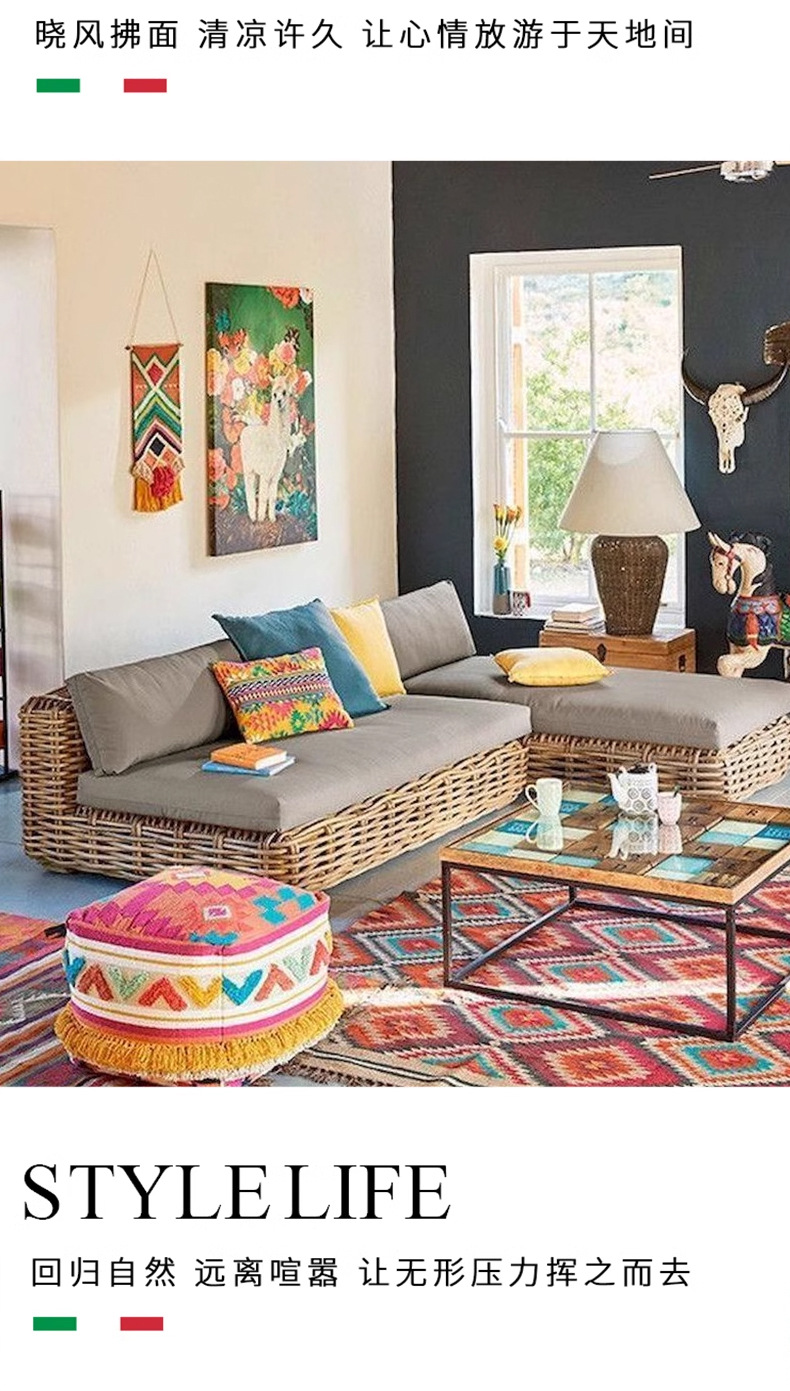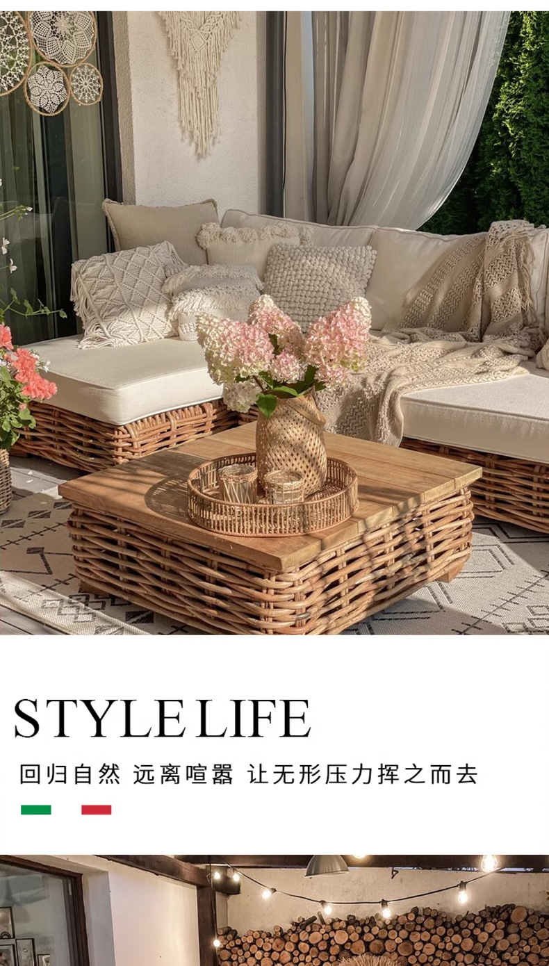 屋外ヴィラ籐ソファ組み合わせ庭中庭籐家具ホテル B&B レジャーリビングルームソファ家具