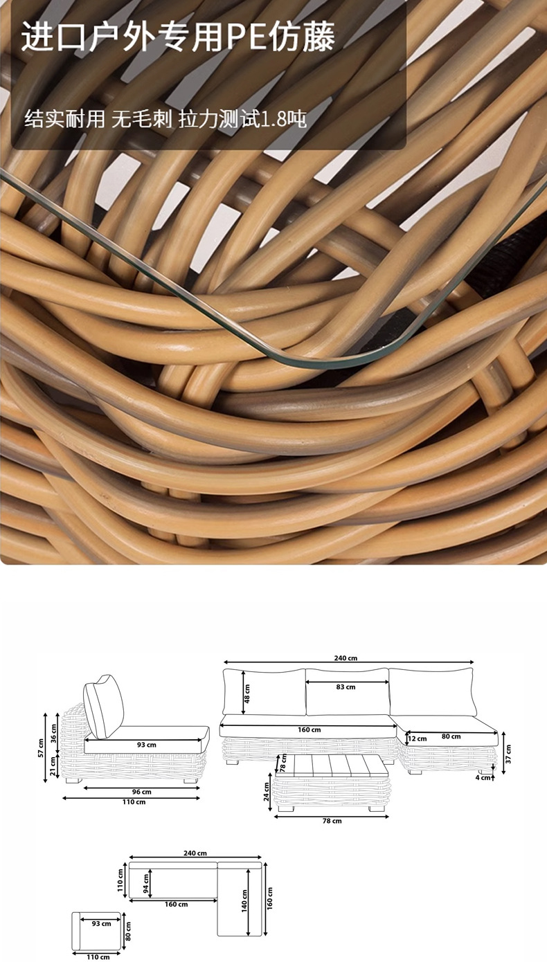 レジャーアウトドアヴィラテラスソファバルコニーB&Bガーデンロープ織りソファコンビネーションリビングルームパティオソファ家具