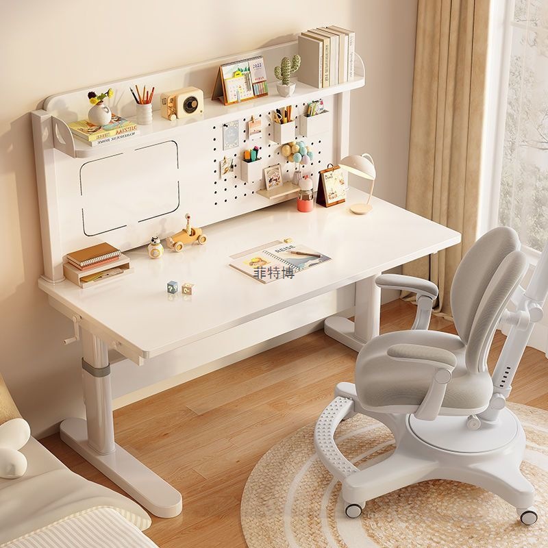儿童学习桌可升降洞洞板写字桌椅套装实木升降小学
