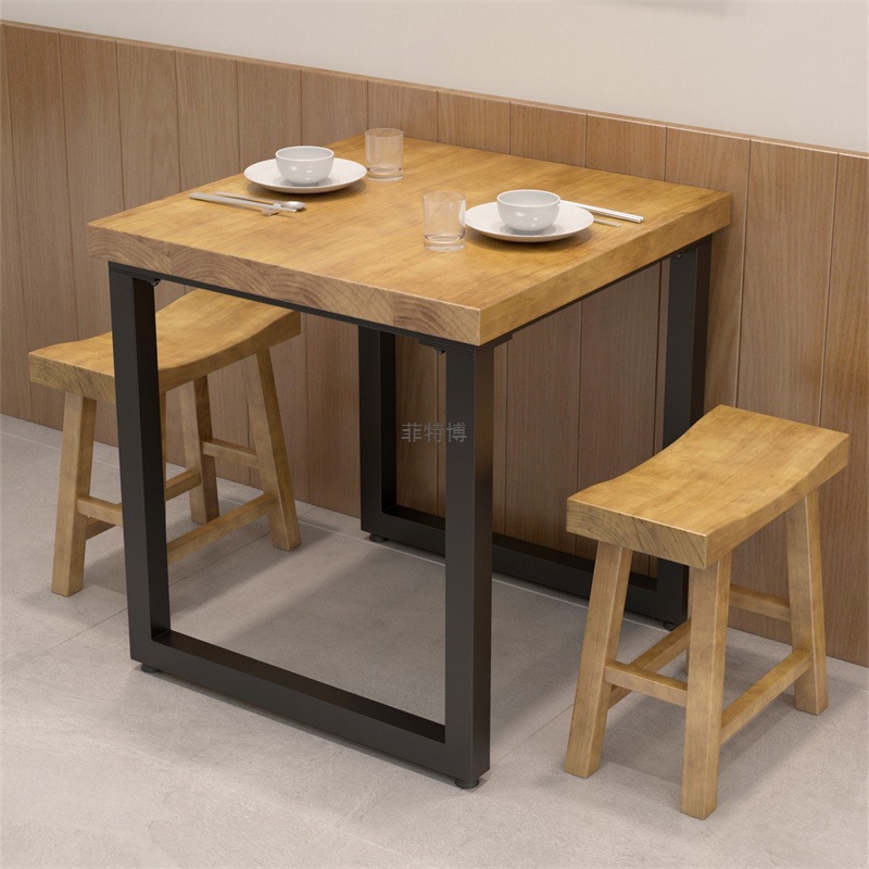 设计师实木餐厅饭店餐桌椅组合餐饮汉堡奶茶店正方形双人小四方桌