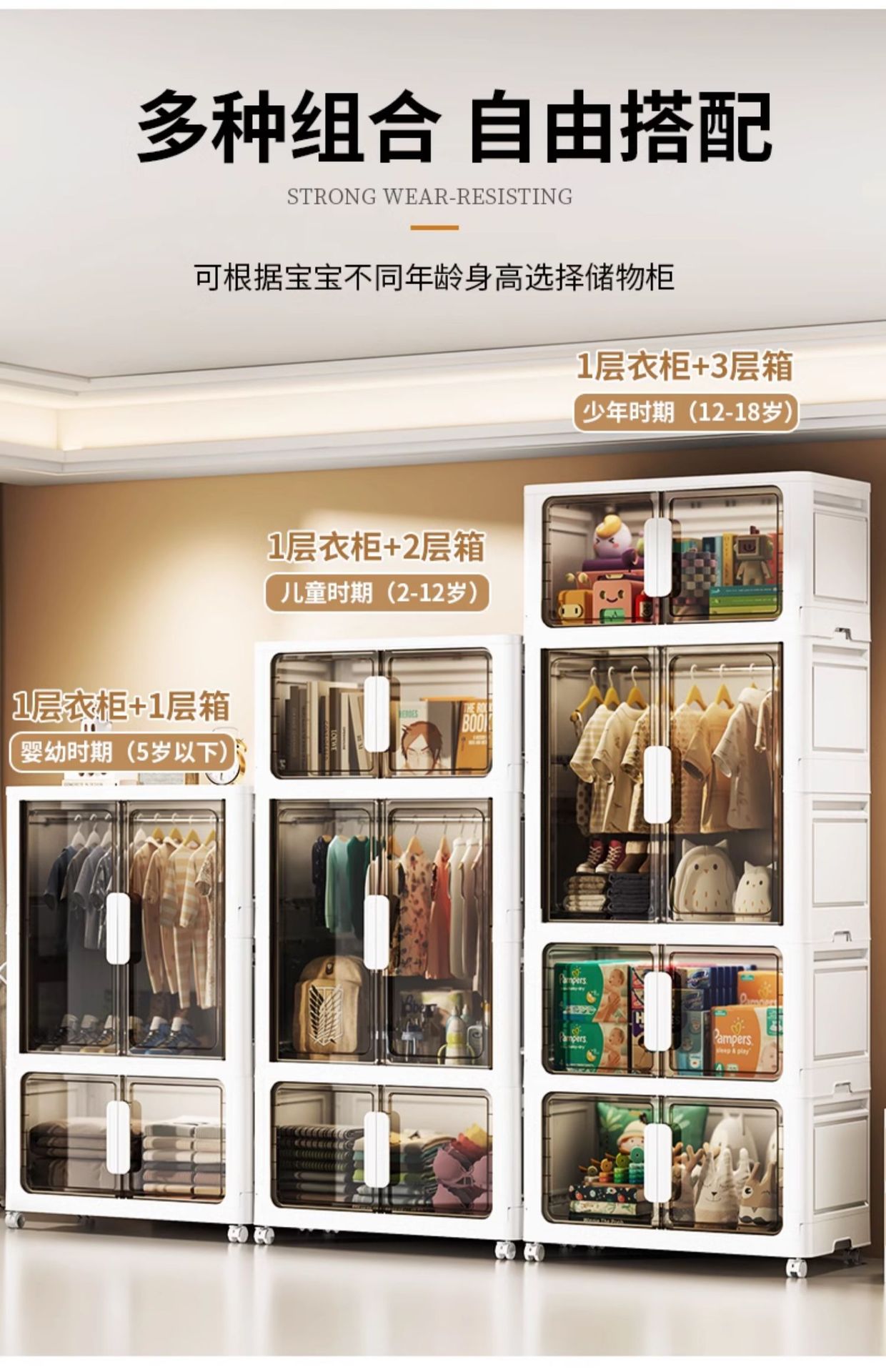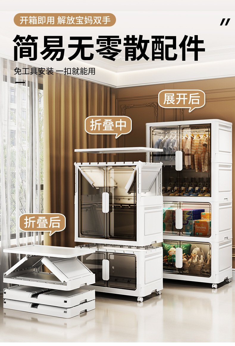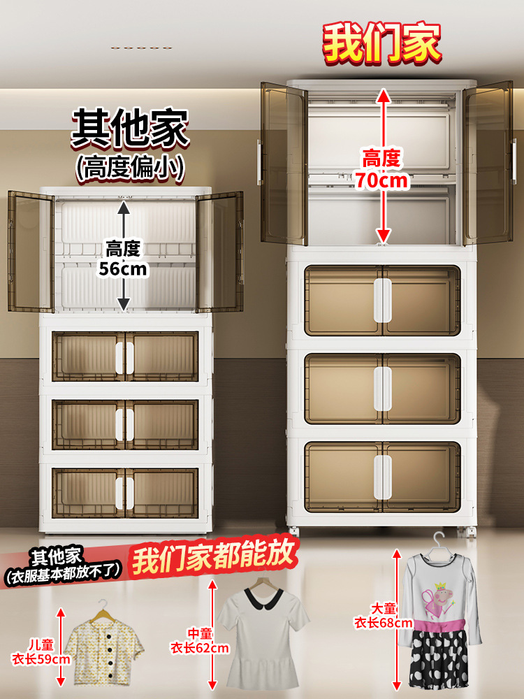 55-85儿童简易衣柜衣服收纳柜多层免安装家用零食储物柜可折叠