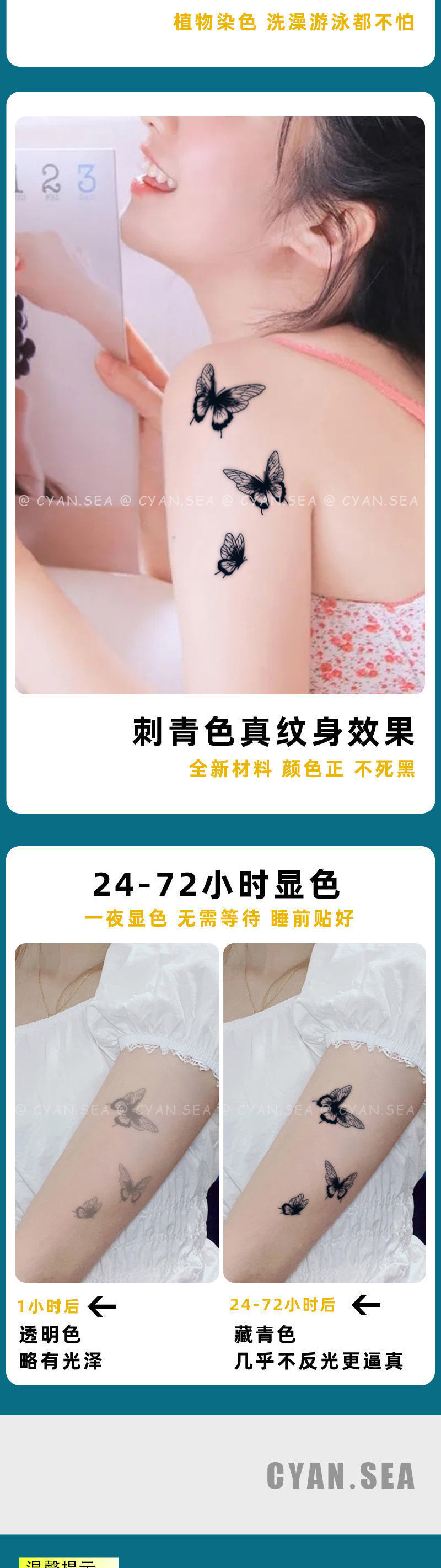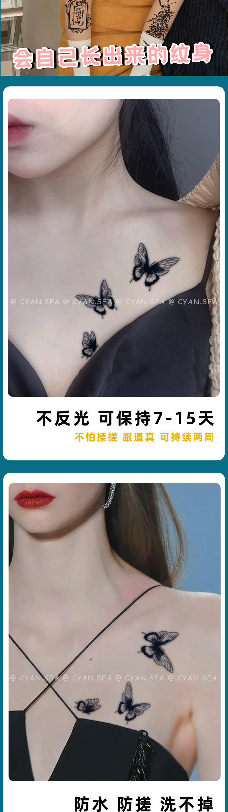 蝶のタトゥーステッカー、半永久的な小さな新鮮な小さな蝶、美しい甘いスタイル、鎖骨と腕、防水、無反射