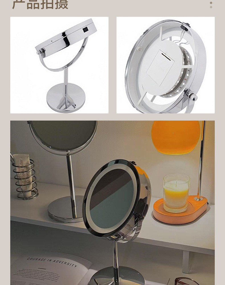 クロスボーダー両面フリップメイクミラーライト付きデスクトップデスクトップおしゃれラウンドメイクミラー高级感コスメミラー