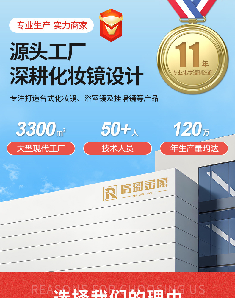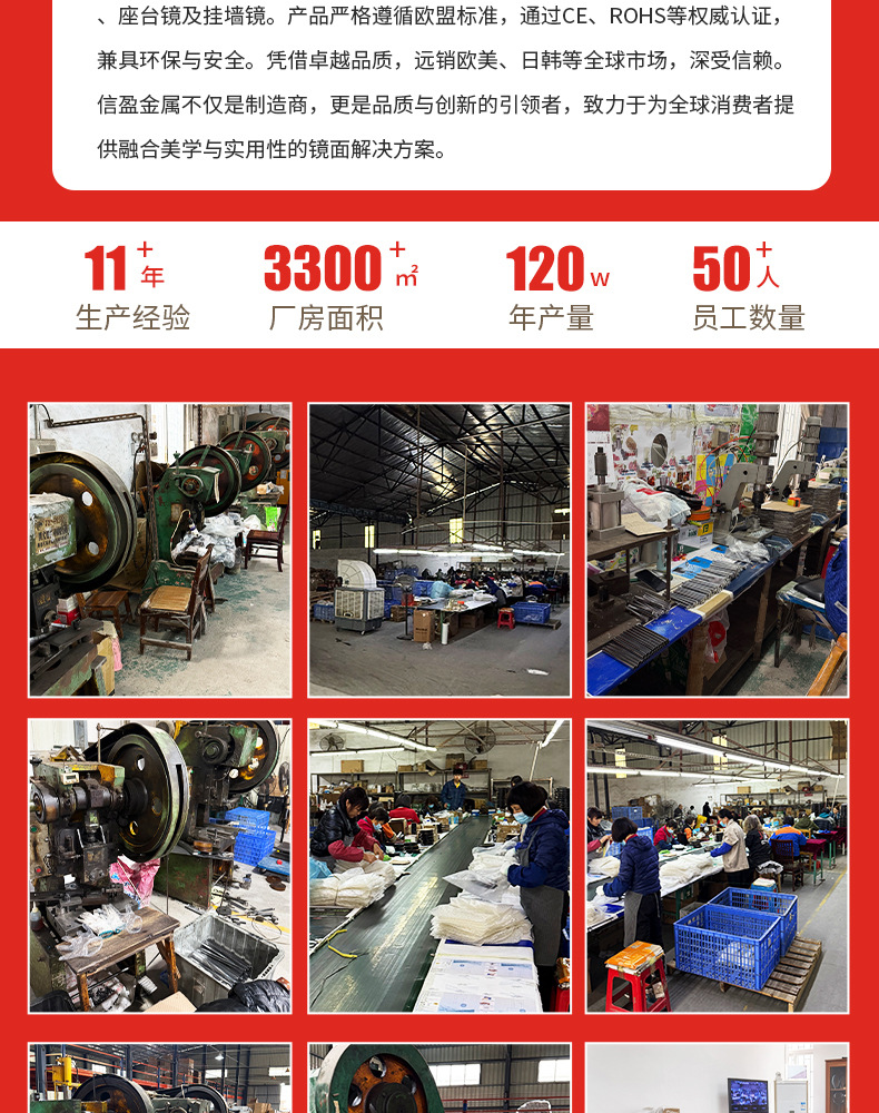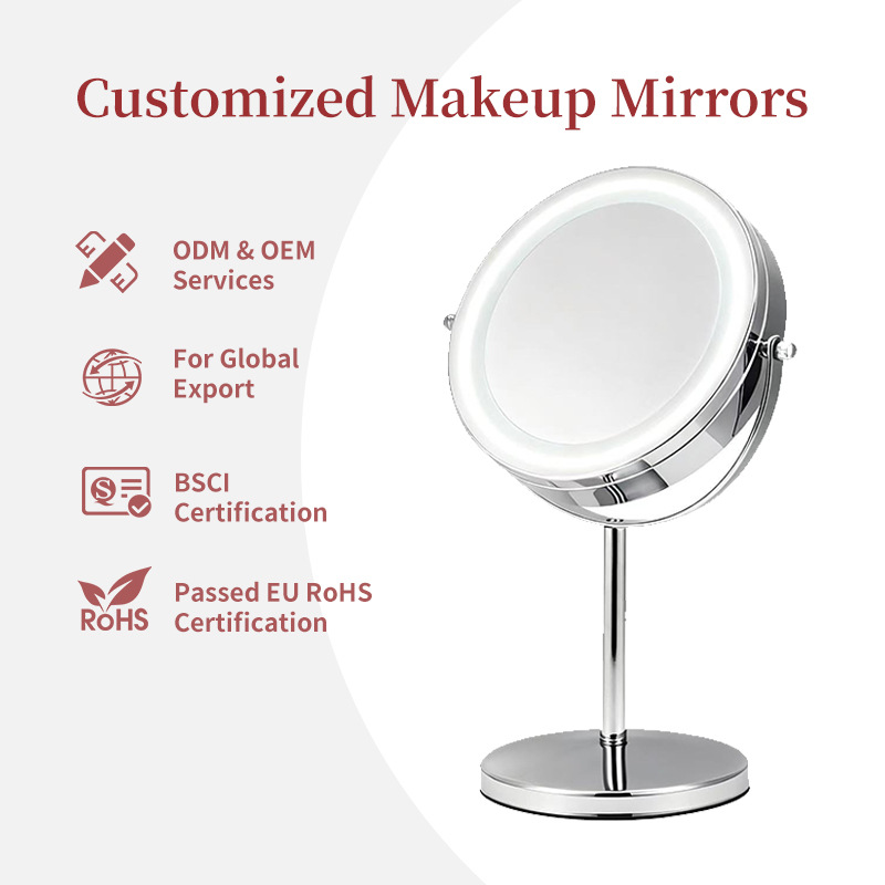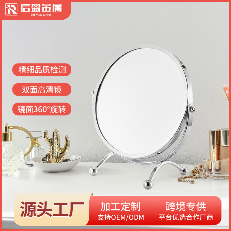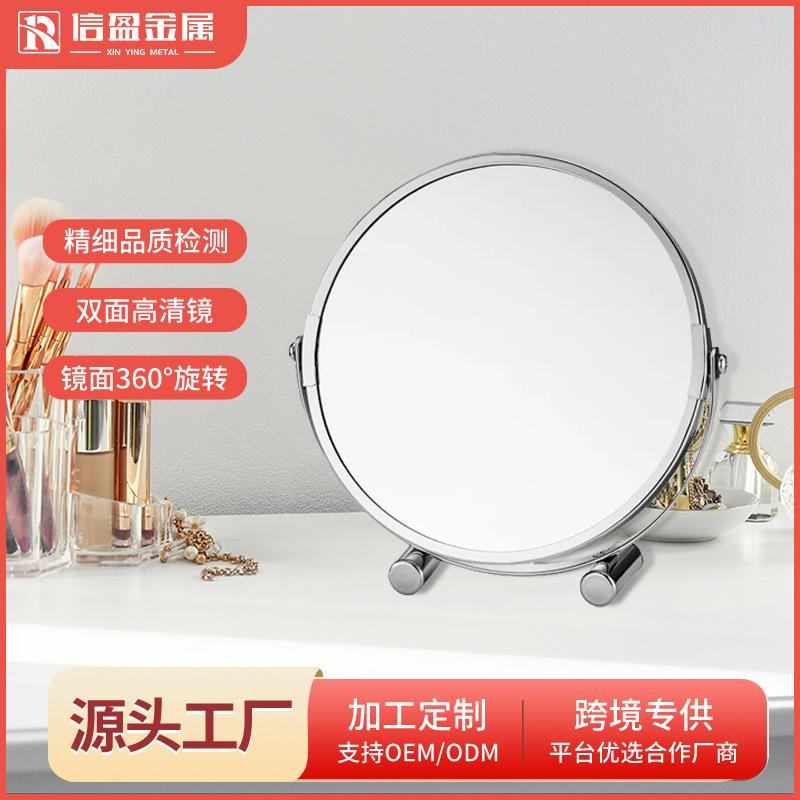 国境を越えたホテル化粧鏡、高級シンプルメタル、学生寮用ポータブルデスクトップ化粧鏡 7inch 8inch