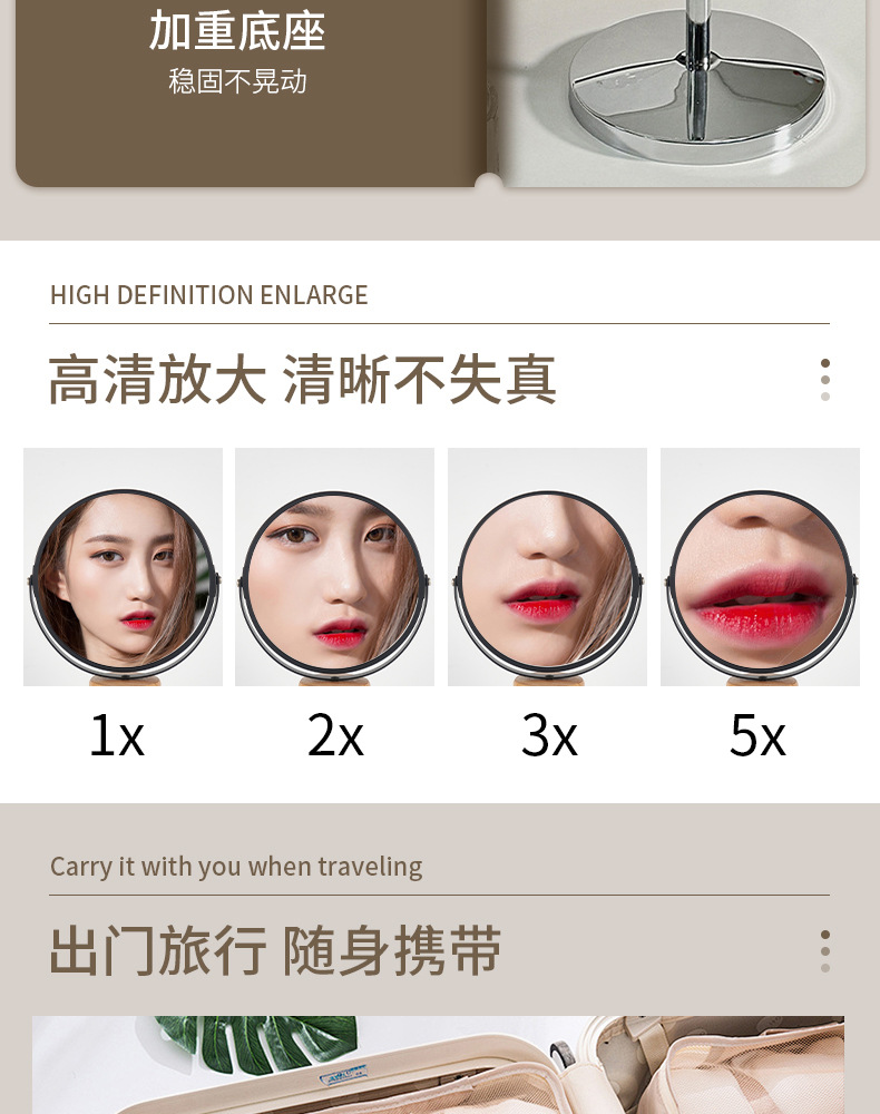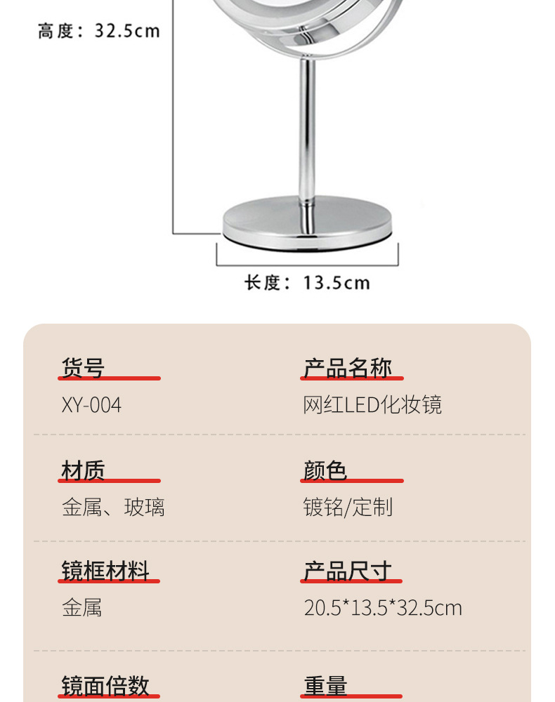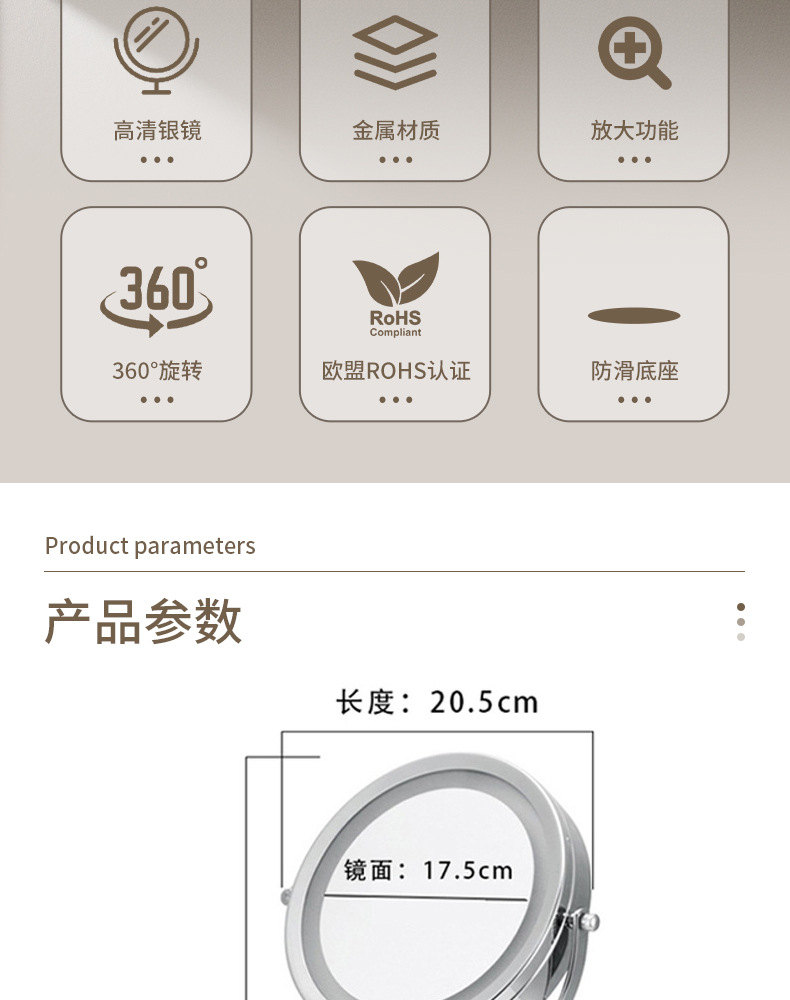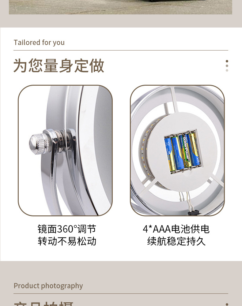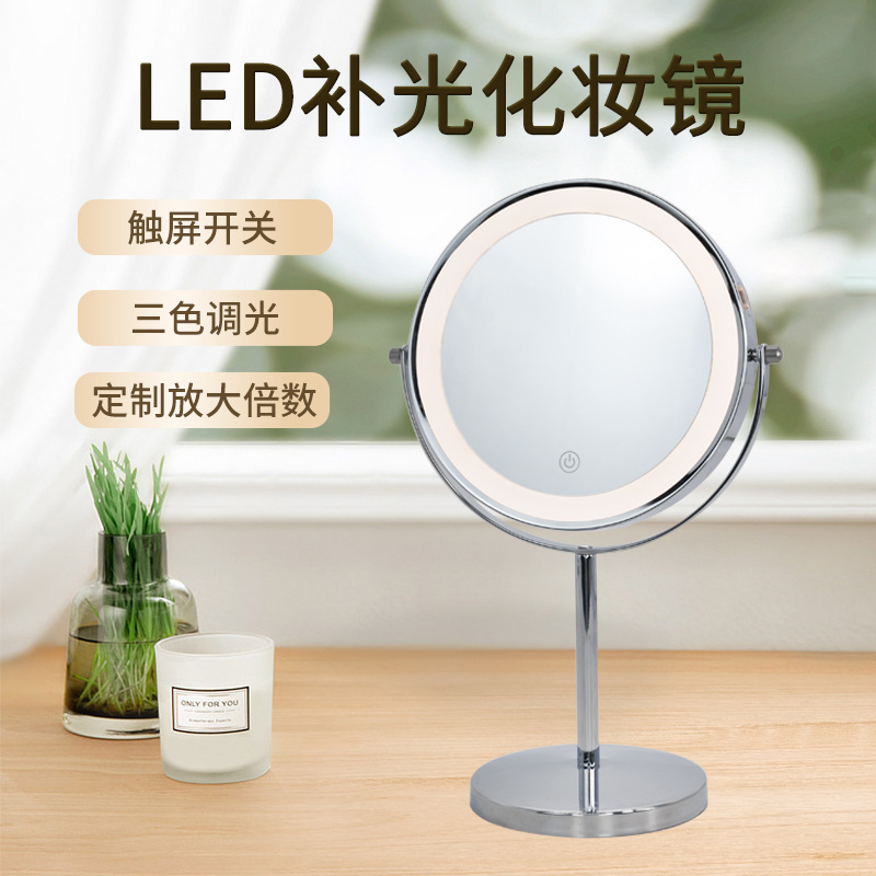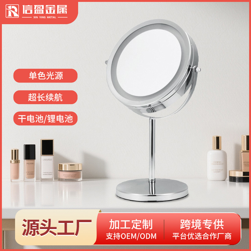 跨境专供led化妆镜子带灯双面台式放大镜子时尚圆形化妆镜高级感