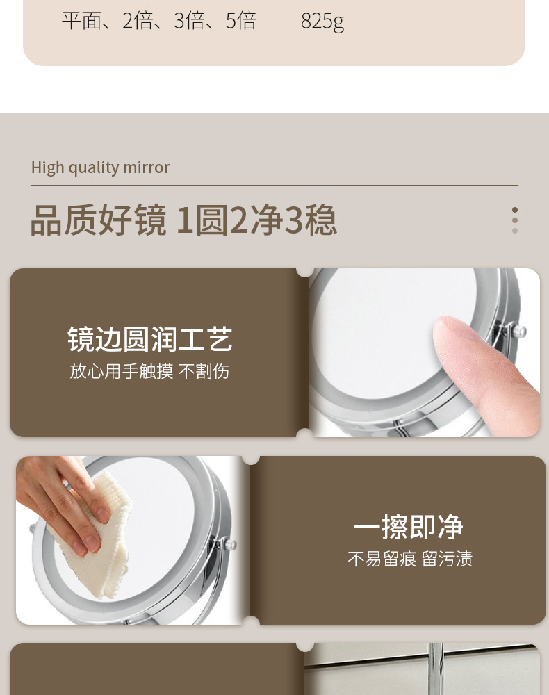 ネット赤金属両面鏡10倍拡大化粧鏡10倍昇降デスクトップled携帯知能補助灯