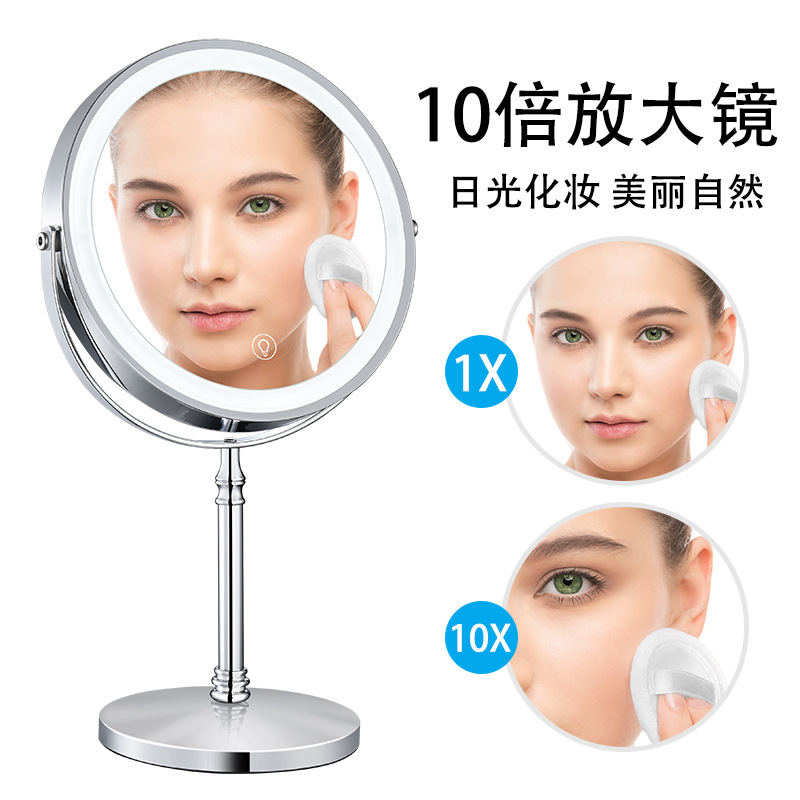 メーカークロスボーダーデスクトップ化粧鏡両面付きledランプ10倍拡大鏡充電調光デスクトップ化粧鏡