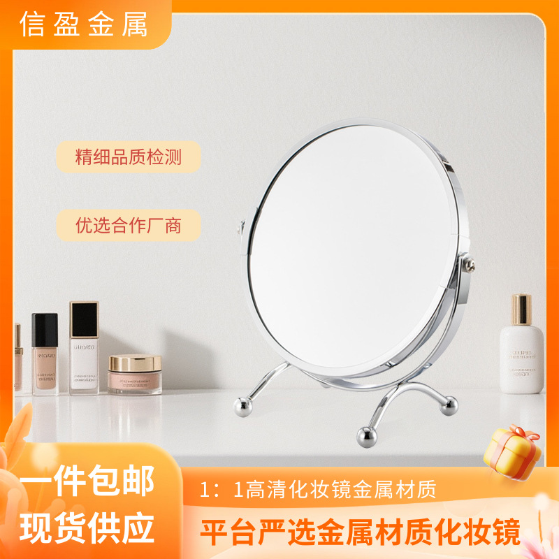 Insミラー金属シンプルデスクトップ卓上両面ミラー家庭用回転学生寮デスクトップ学生ドレッシングミラー