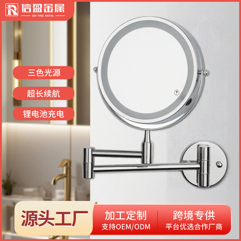 2025年注目のLED化粧鏡、丸型卓上ミラー、ライト付き、金属製ギフト、三色光、越境携帯充電式