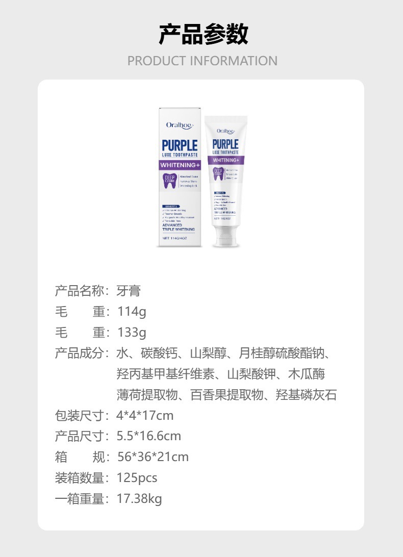 ORALHOE クリーン歯磨き粉デイリージェントルケアパープル歯磨き粉物理的な色合い新鮮できれいな黄色の歯