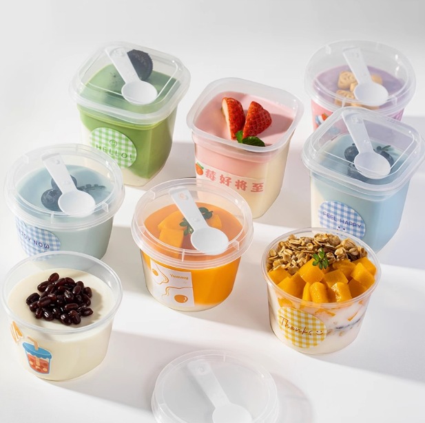 プリンカップ使い捨て二重皮ミルク専用ボウルゼリー貿易用正方形ヨーグルトカップ蓋付き包装箱ムース