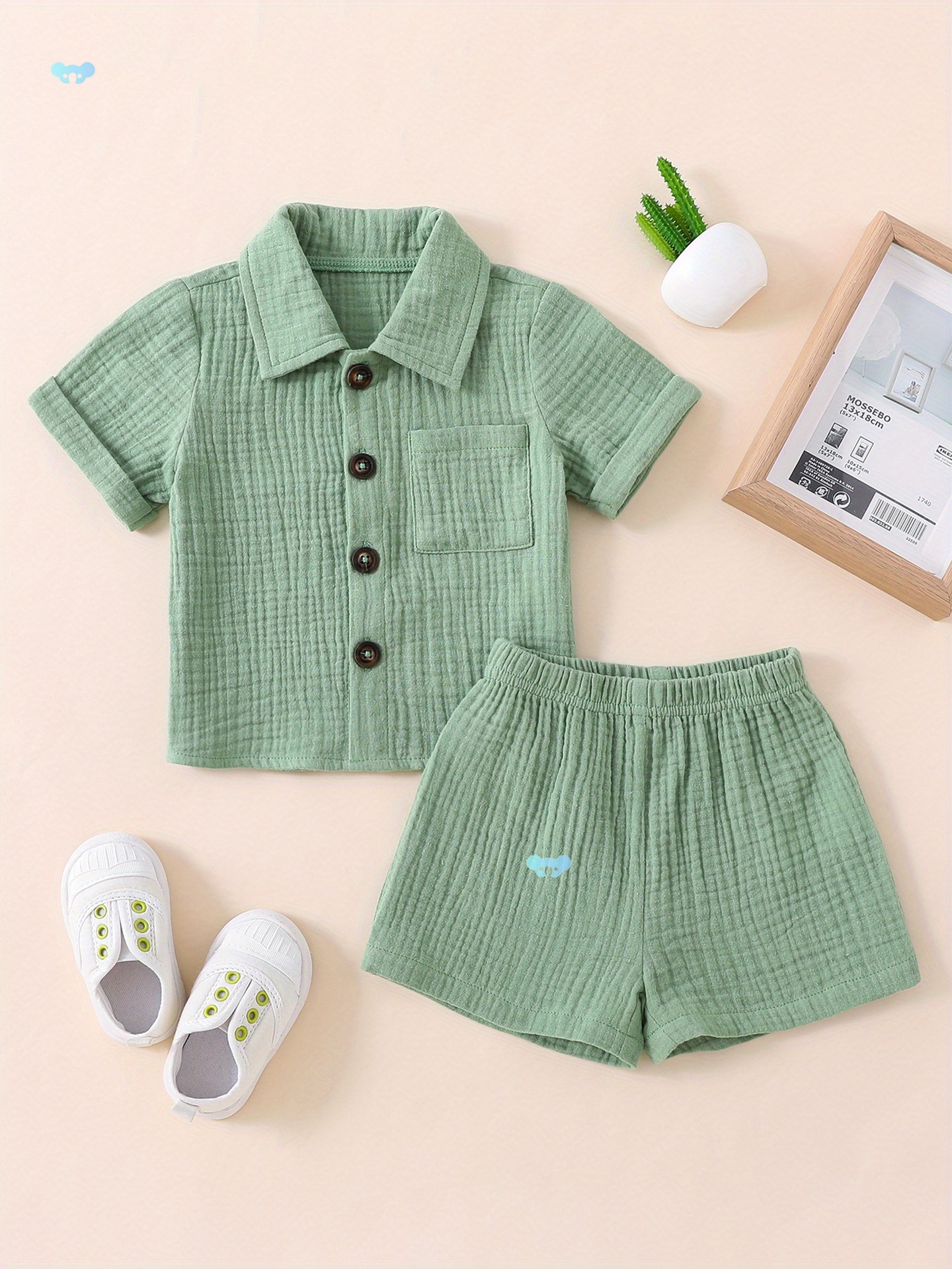 幼児ベビー 2 ピース夏服半袖ボタンラペル