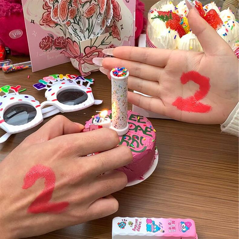 キャンデーの花の誕生日のろうそくの扇子の雰囲気感のケーキの装飾は撮影のアイデアの儀式感のネットのサプライズを使います。
