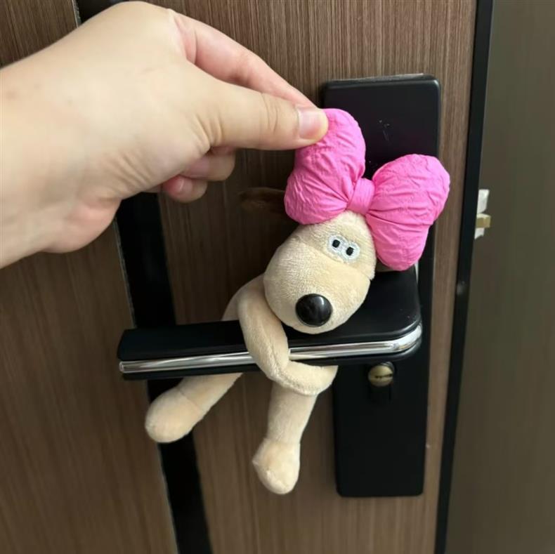 蝶結びの犬のドアの取っ手のペンダントのかわいいぬいぐるみの装飾のアイデアの寝室は衝突防止の番手の犬を配置します。