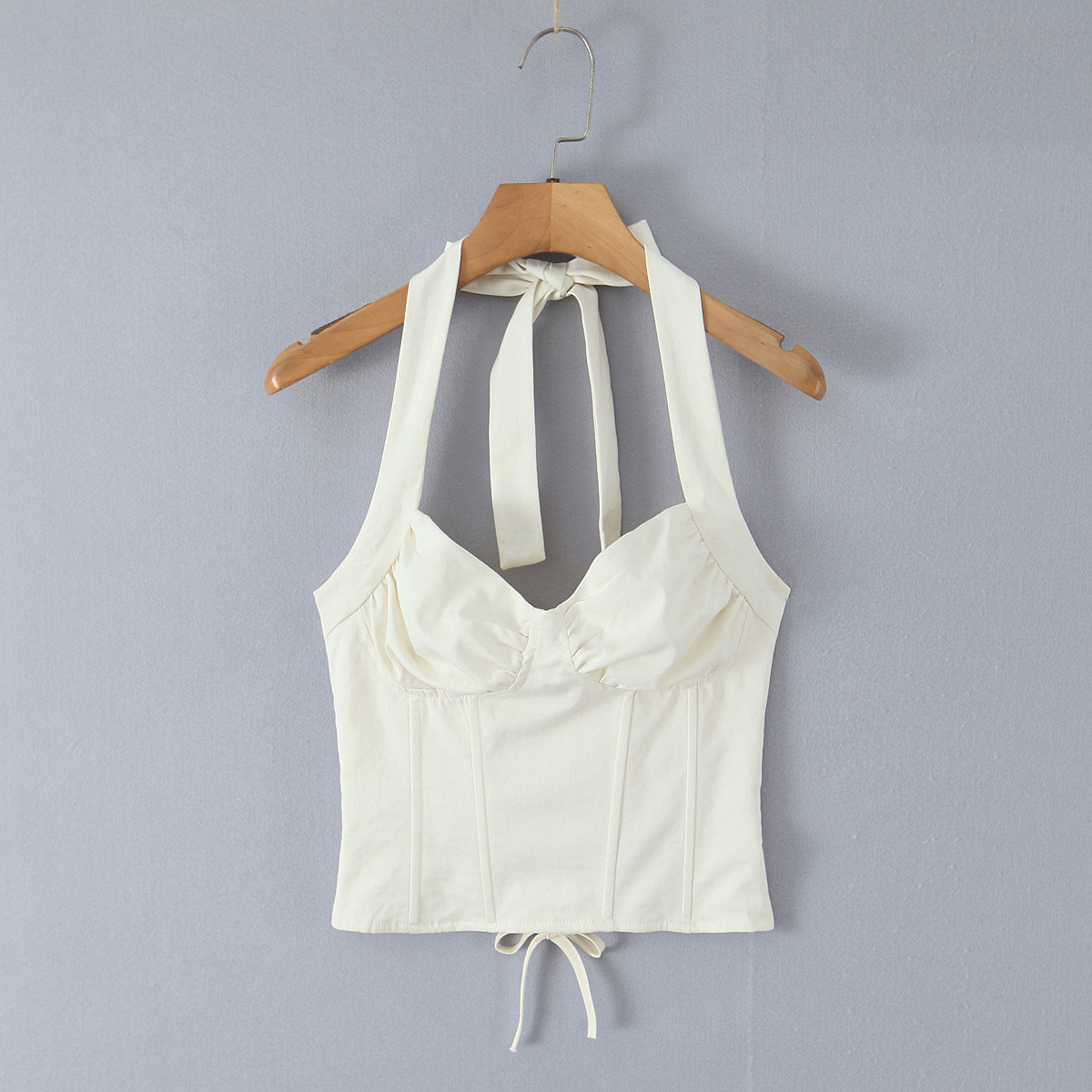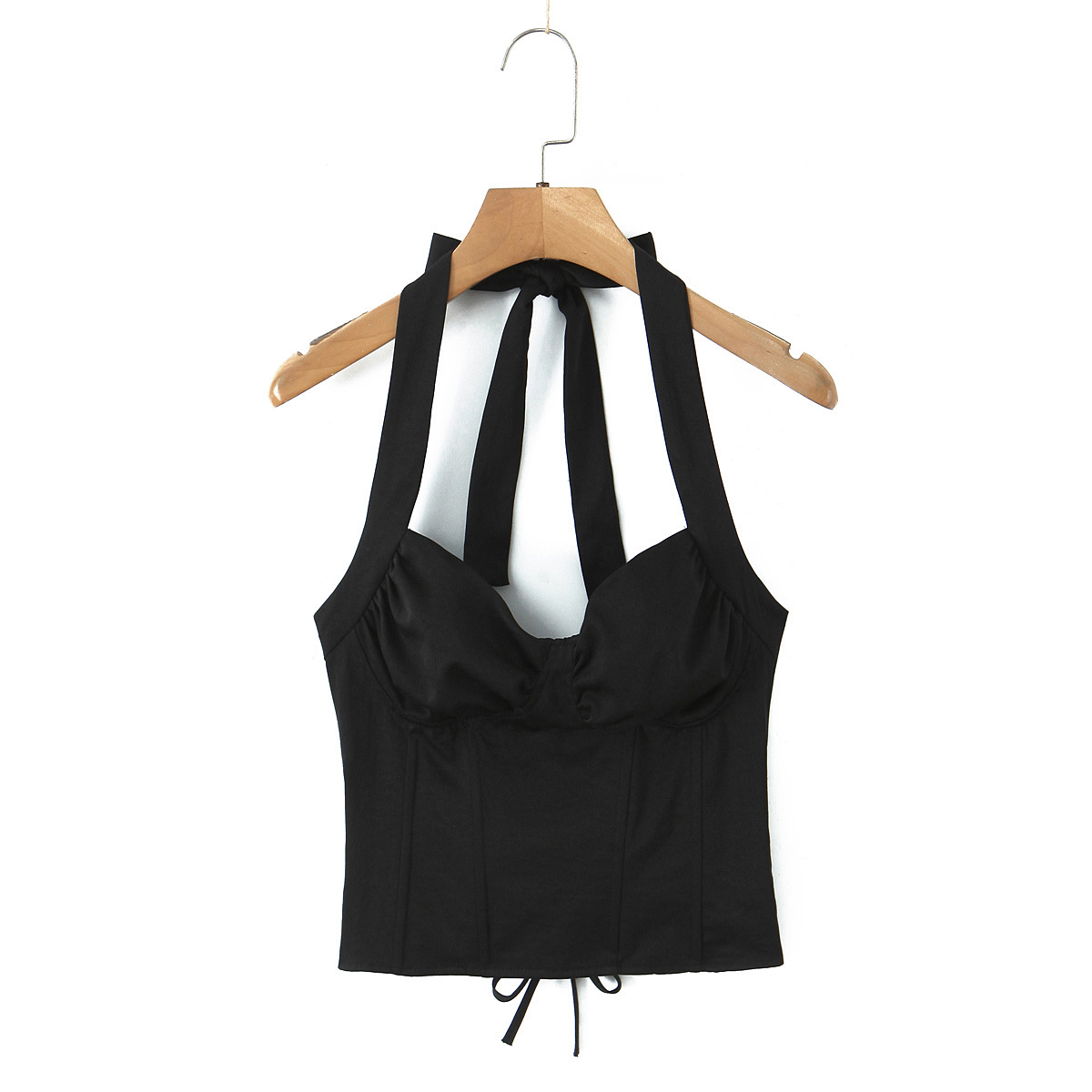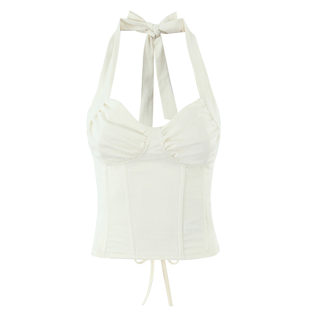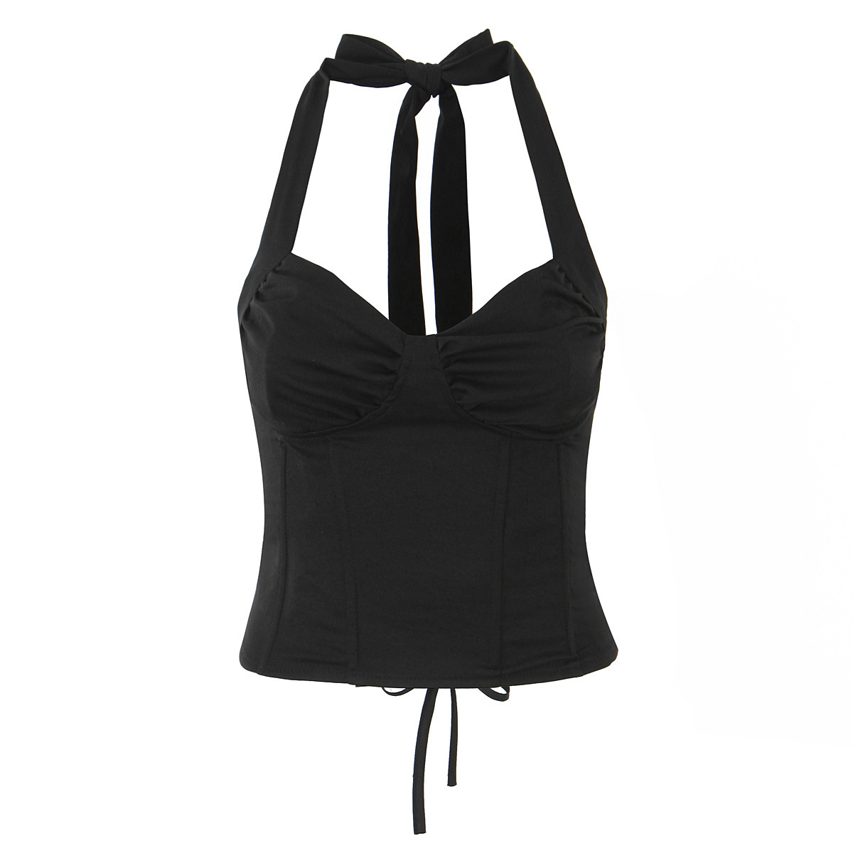 ヨーロッパとアメリカのホットガールセクシーなホルターネックフィッシュボーンチューブトップストラップベスト女性のための 2025 夏タイト痩身ウエストトップ