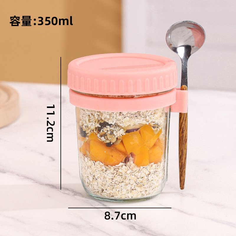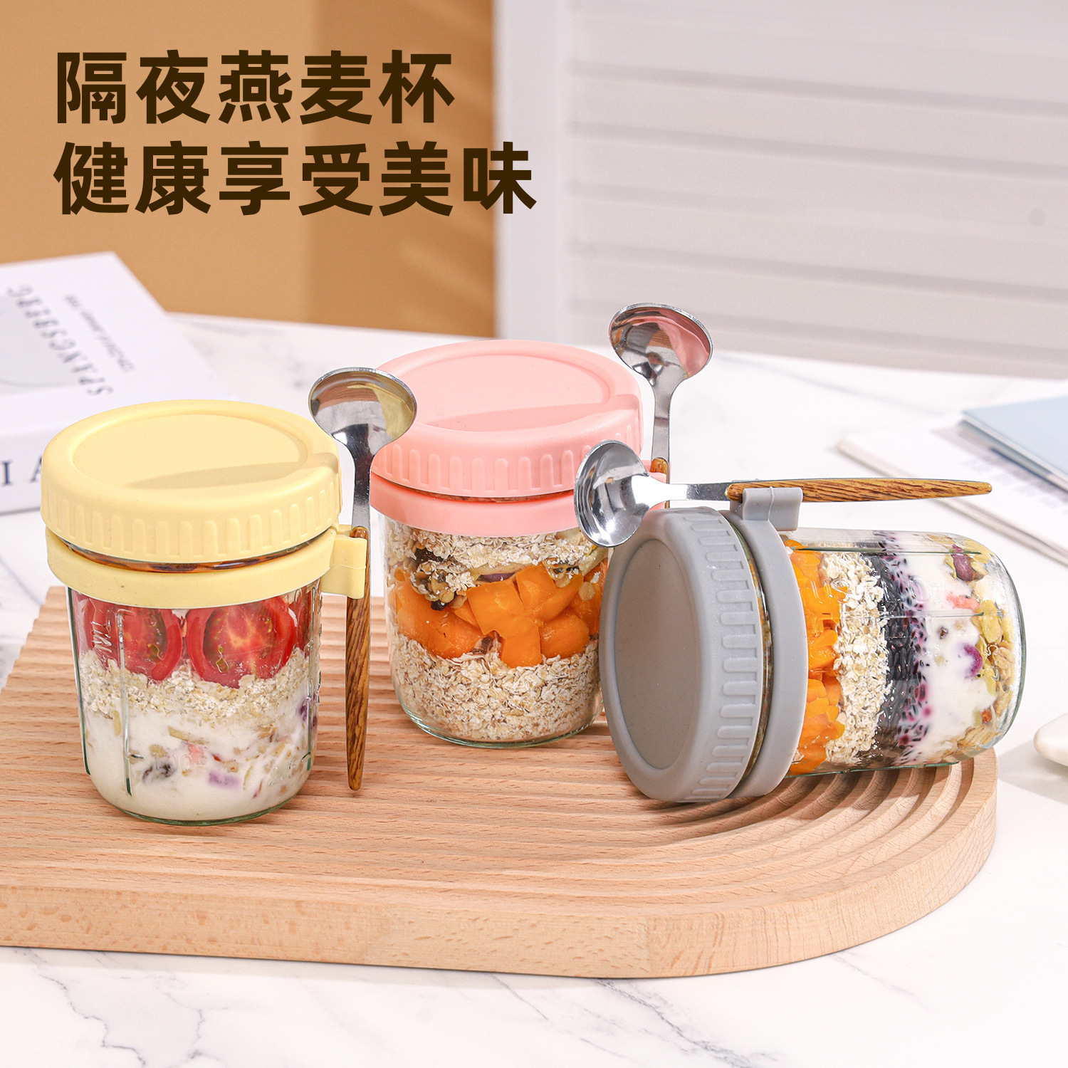 アマゾン一晩中エンバクカップガラス蓋付きスプーンシール付き朝食カップ携帯牛乳サラダヨーグルトカップ