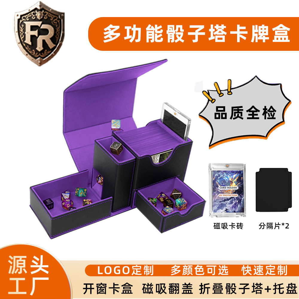 卡游骰子塔游戏卡盒横插符文战场牌盒指挥官TOKEN卡牌开窗收纳盒