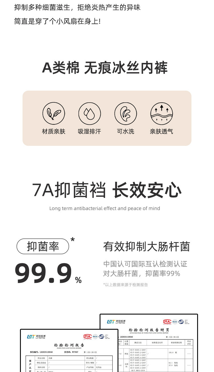 7A 抗菌ピーチヒップカバーシームレスアイスシルク下着女性の通気性抗菌綿延長クロッチスポーツ目に見えないブリーフ