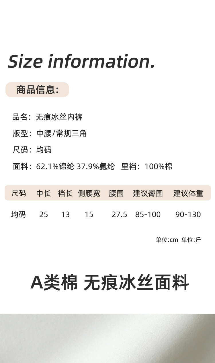 10A 抗菌シームレスヌード感大型ヒップカバーアイスシルク下着女性用クールライン通気性抗菌延長股間アイスシルク
