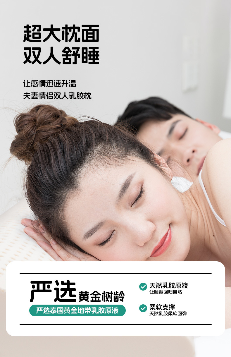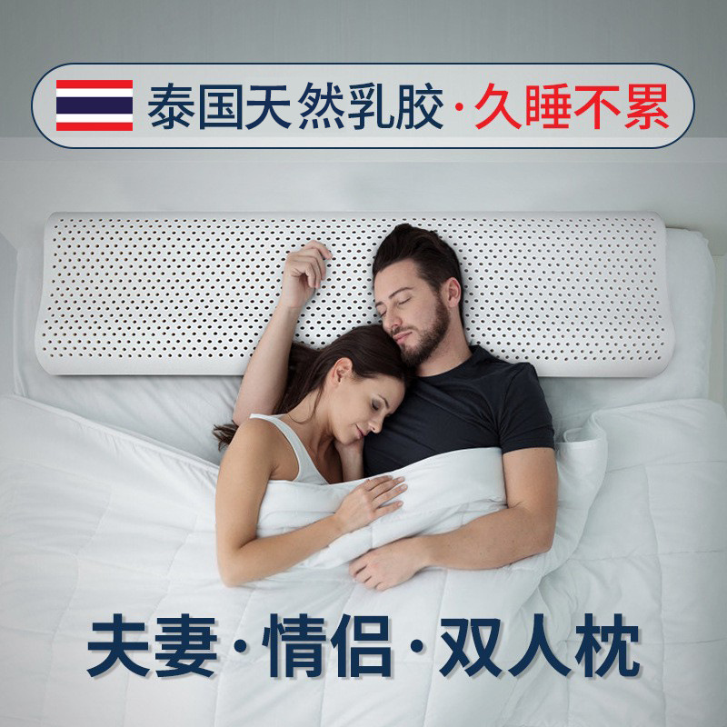 纯天然乳胶枕头护颈椎枕助睡眠夫妻枕芯一体1.2m1.5米双人长枕头