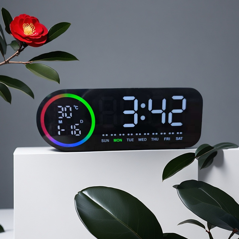 Led鏡面デスクトップ目覚まし時計カレンダー温湿度台時計シンプル電子デジタル時計メーカー卸売り