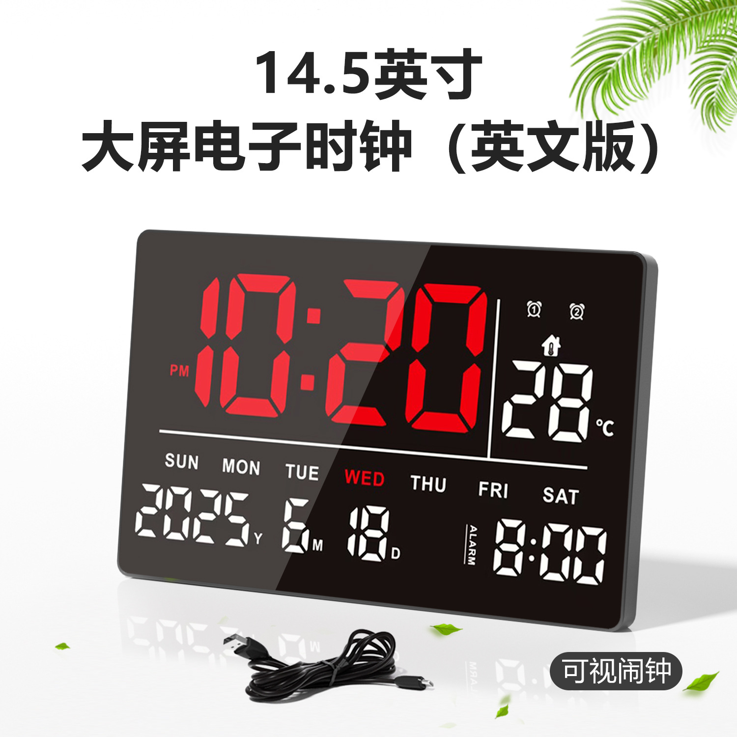 15inch 大画面LED電子時計デジタル壁掛け時計リビングルーム永久カレンダー中国語Bluetooth 3615新モデル