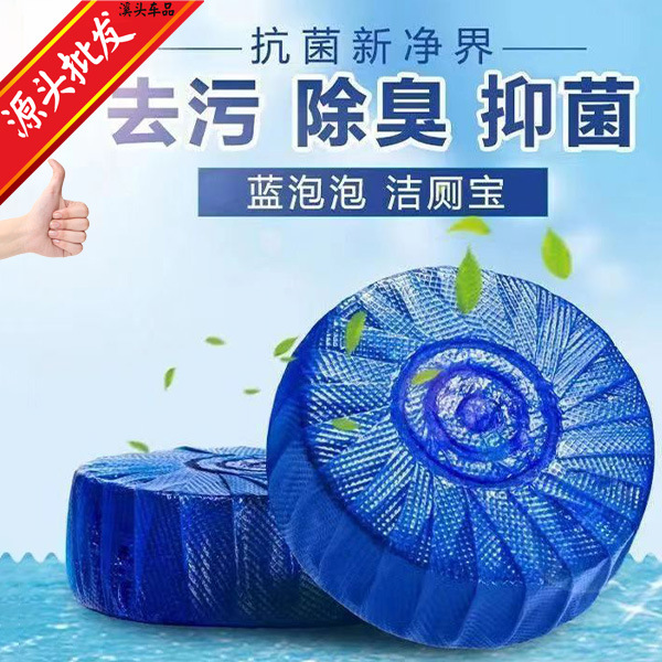 青い泡の便器の自動洗剤はトイレをきれいにします。