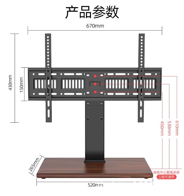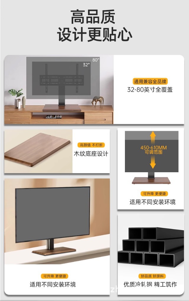 テレビの台の穴を開けないでデスクトップを高くして、スタンドのデスクトップのスタンドの高さを調整します。通用32-75インチです。