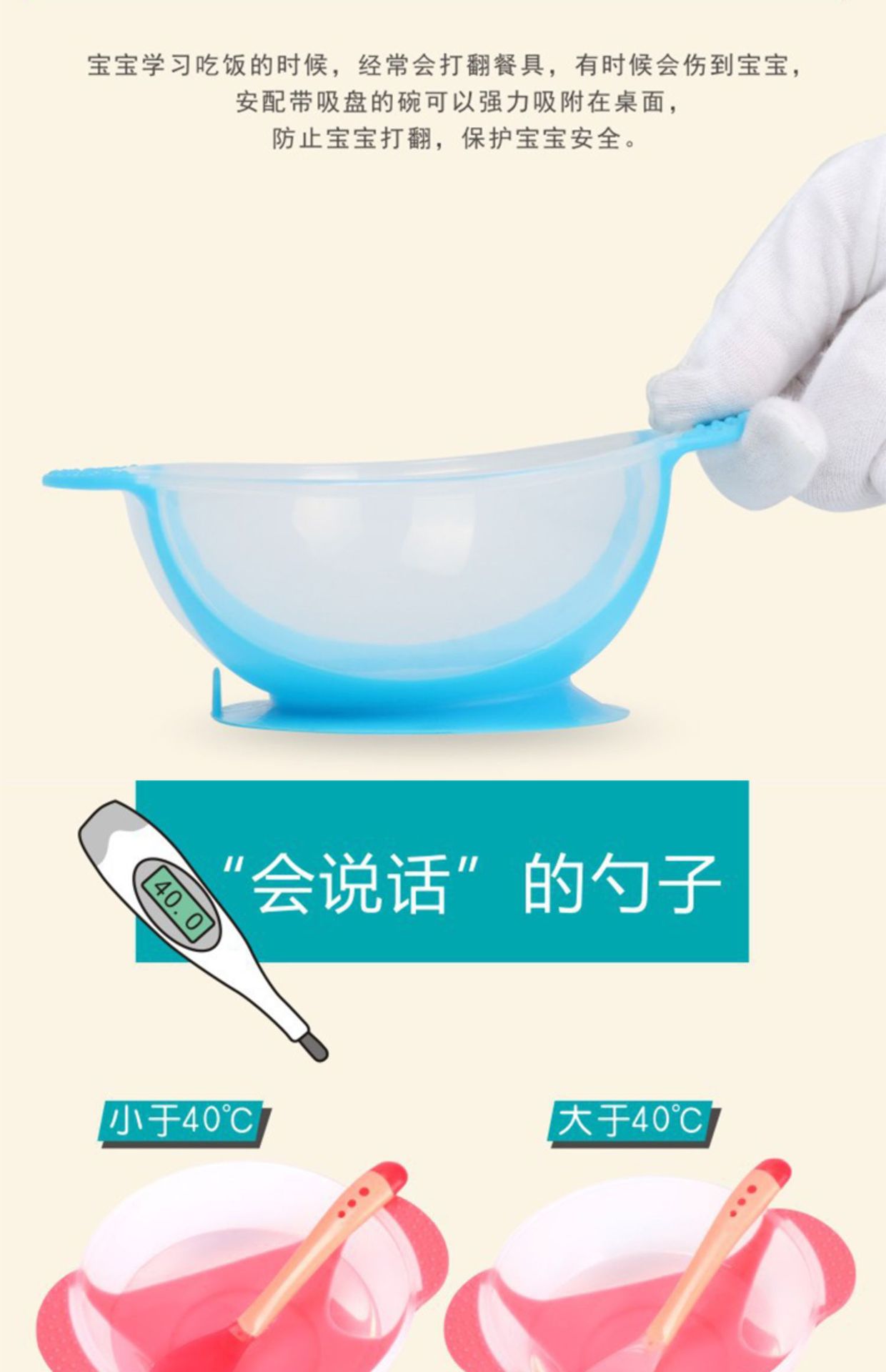 赤ちゃん吸盤ボウルと感温スプーンセット赤ちゃん子供食器赤ちゃんボウルセット
