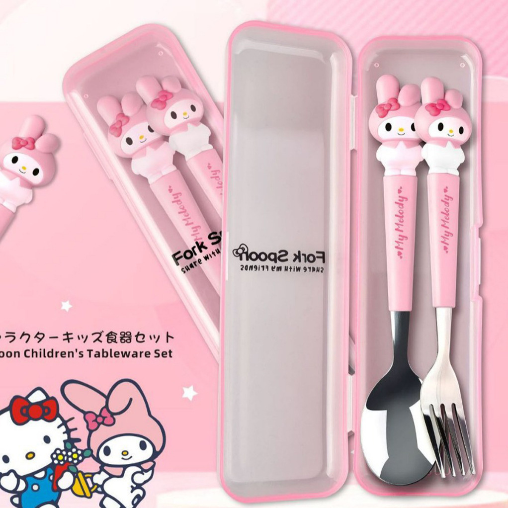 三丽鸥大耳狗美乐蒂410不锈钢儿童可爱卡通便携餐具筷子勺子套装2