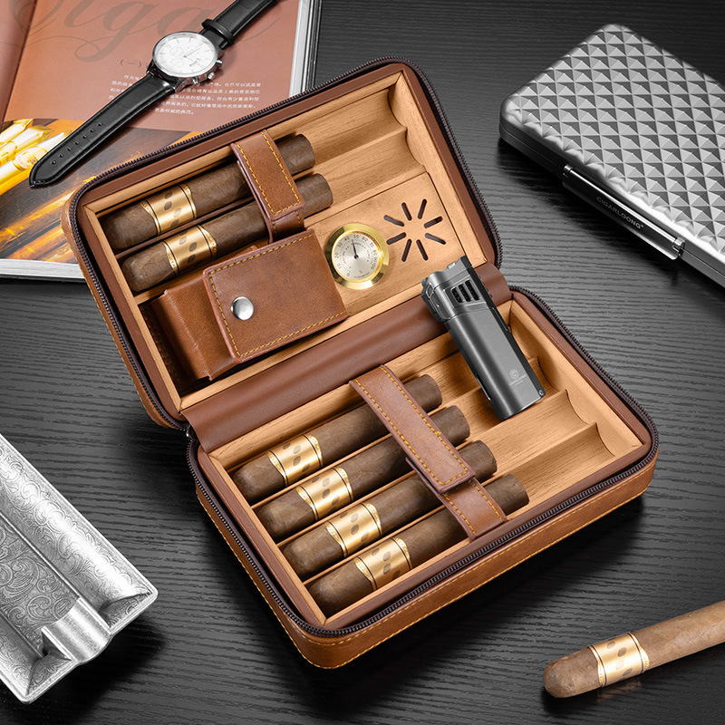 ポータブル7本入シガージッパーパック保湿加湿アルコームシガーケース旅行に便利