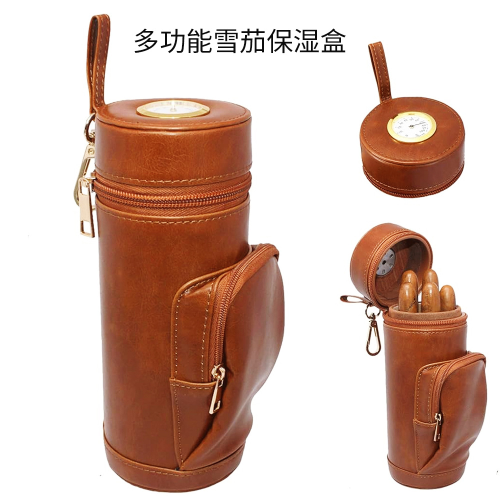 Jialong シガーケースポータブル多機能収納レザー杉材密封ロック湿気外部精密湿度計