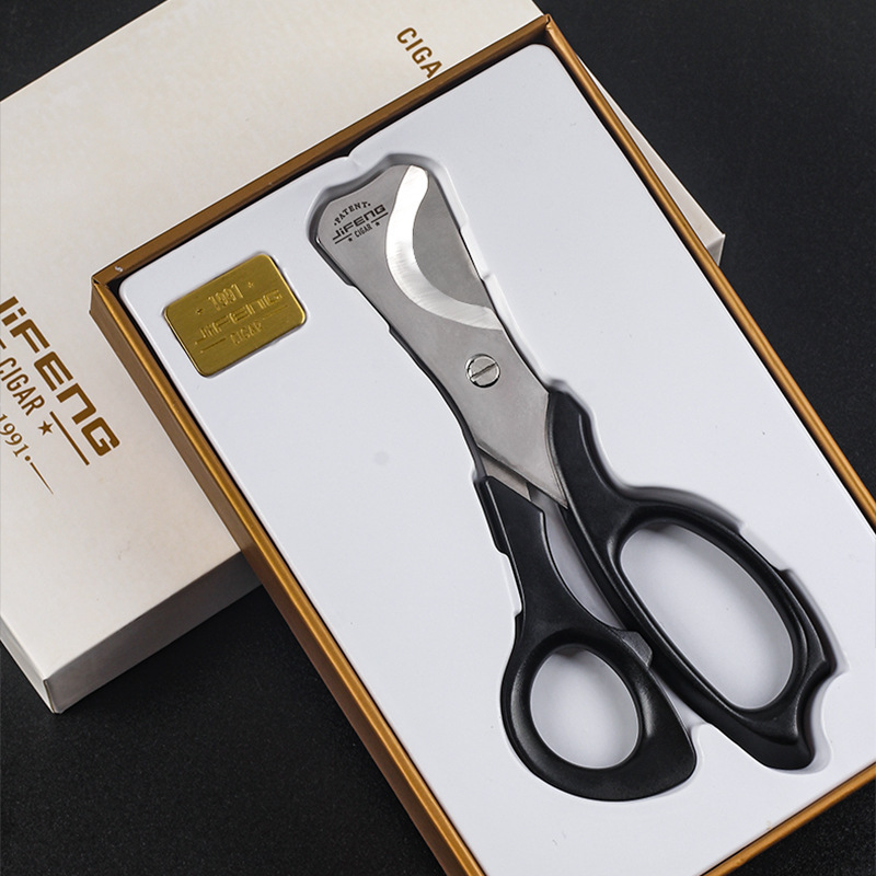 JIFENG季節風シガーはさみ平口ステンレスポータブル鋭利個性ハンドルシガーカットギフトボックス