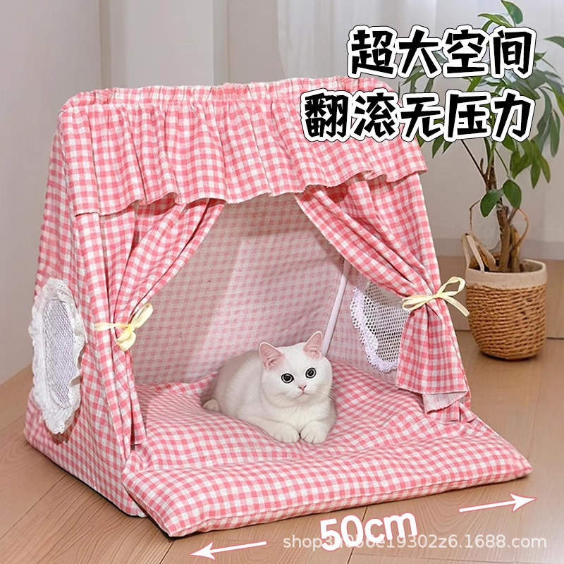 猫テント、夏用猫小屋、取り外し可能で洗える安全なペットベッド、犬小屋、オールシーズン対応の半密閉型ペットテント
