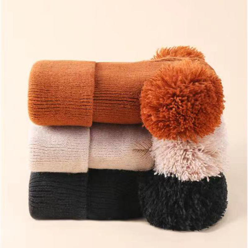 商品番号 ソリッドカラーのダブルファーボールニット帽
