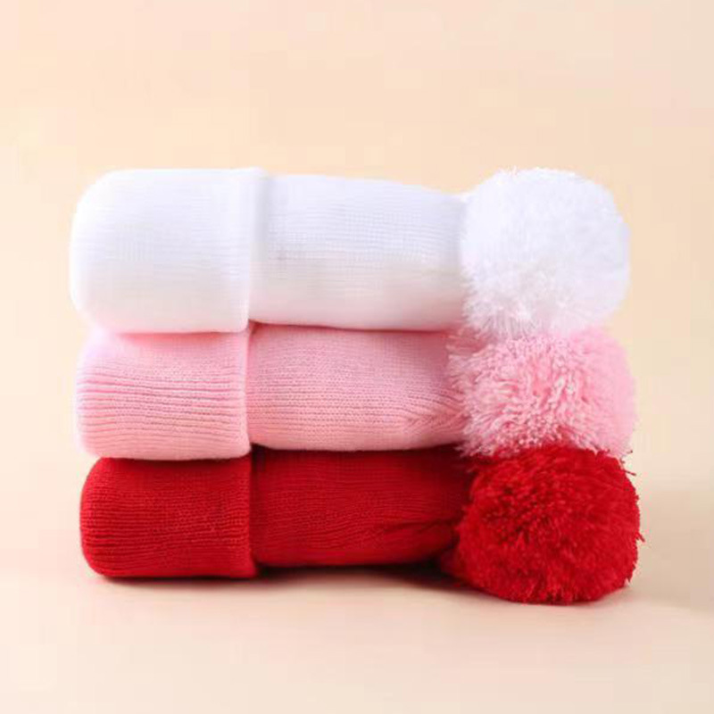赤い子供用毛玉ニット帽 0-3 歳のベビー帽子新生児ウール帽子秋と冬の子供用毛玉ニット帽子