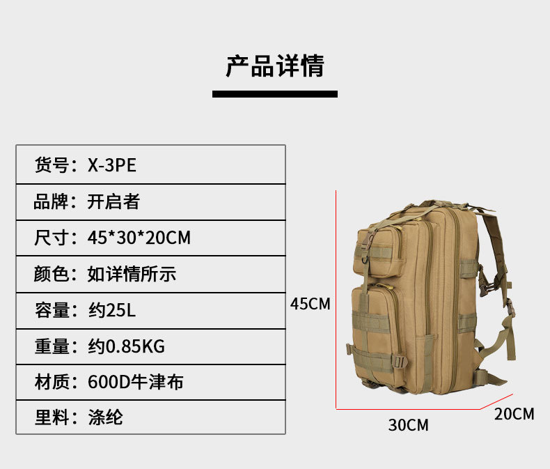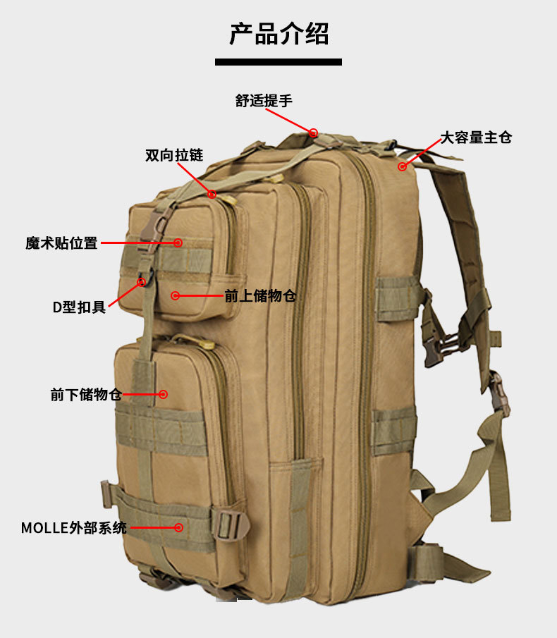 クロスボーダー戦術ランドセルアウトドア登山バッグ軍ファン装備キャンプバックパックスポーツ3pリュックサック