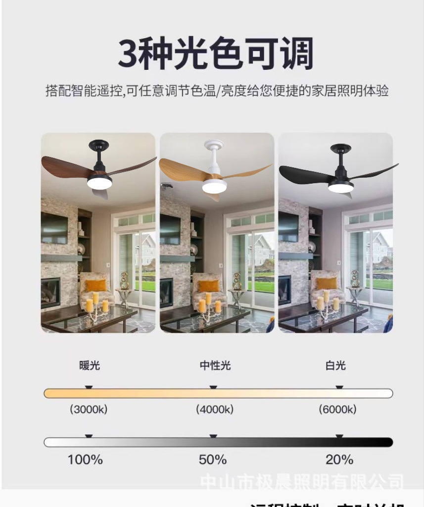 跨境新款吸顶三叶风扇灯批发三色变光遥控款吊扇灯可拆卸卧室吊灯
