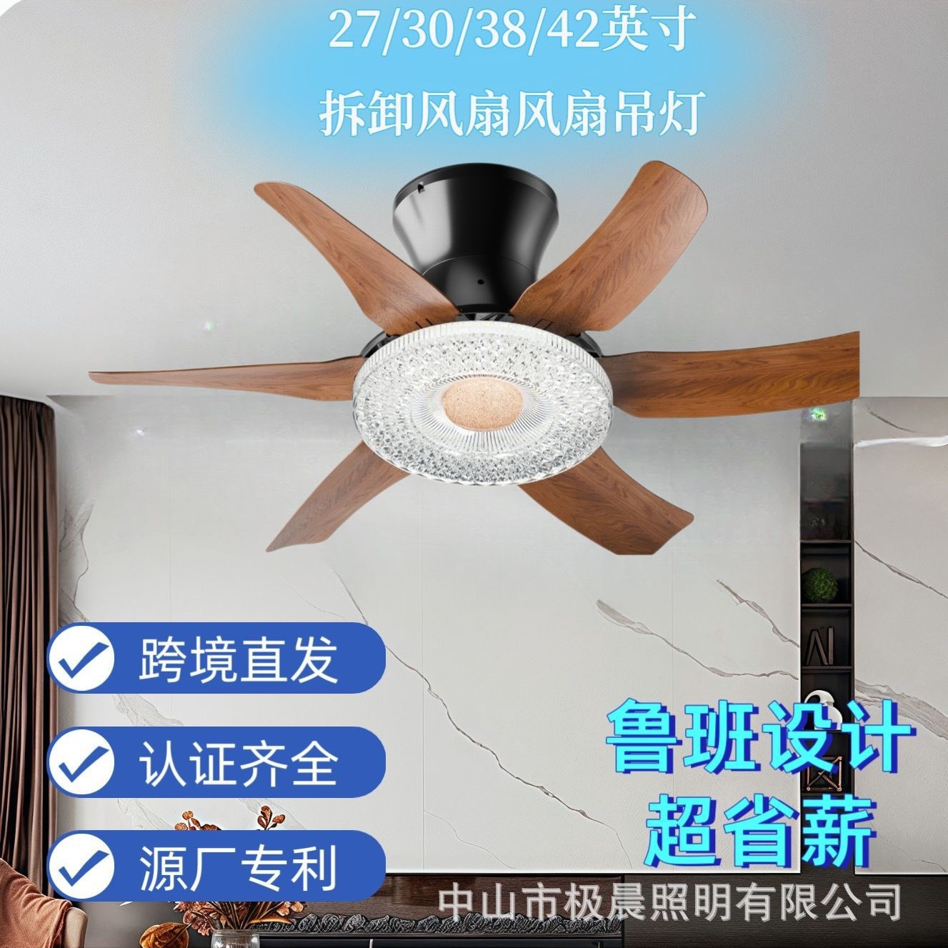 日规新款风扇吊灯书房餐厅卧室灯电风扇灯具跨境亚马逊厂家现货