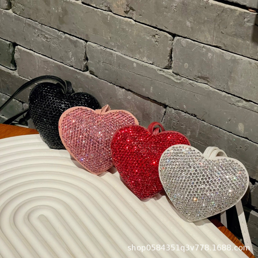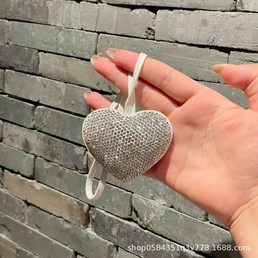 ホット販売フルダイヤモンドメタルハート型キーホルダー小さなミラーペンダントジュエリーポータブルミニ化粧鏡光沢のある