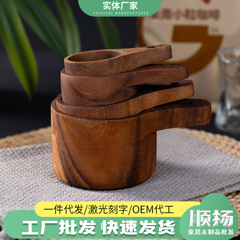アカシア材計量スプーンセット コーヒー豆計量スプーン ベーキングツール 4点セット アカシア材計量カップ 調理測定