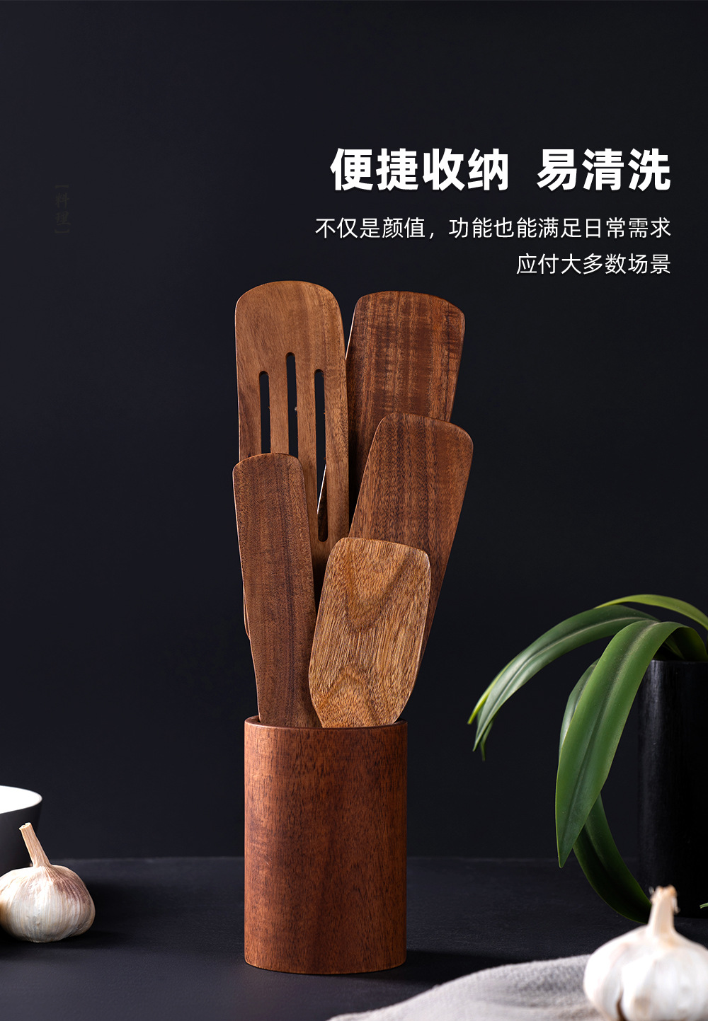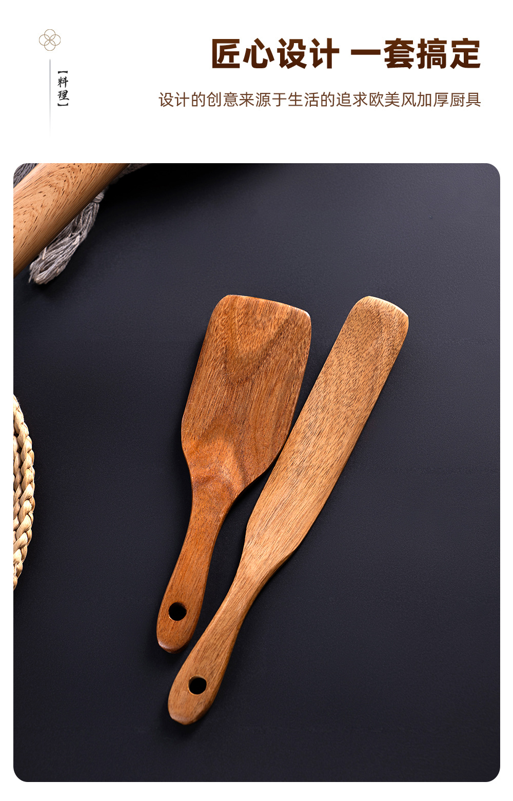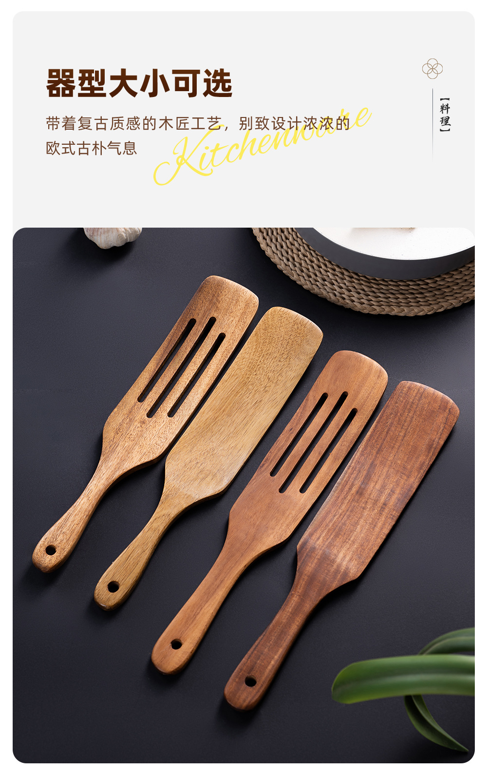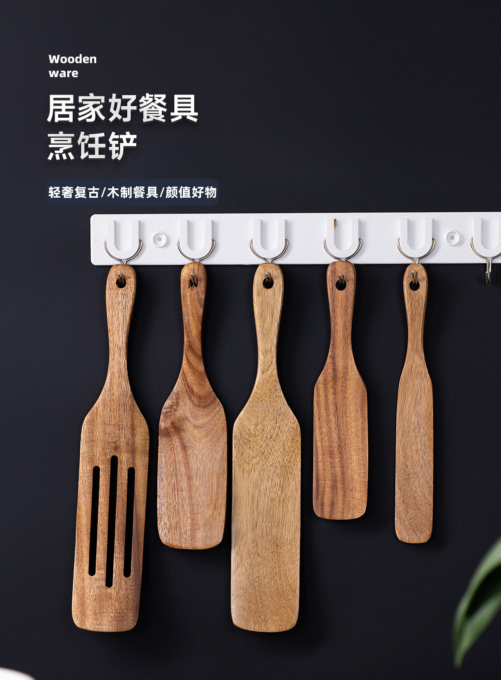 亚马逊热款相思木抹刀铲整木一体家用烹饪锅铲实木煎铲牛排铲