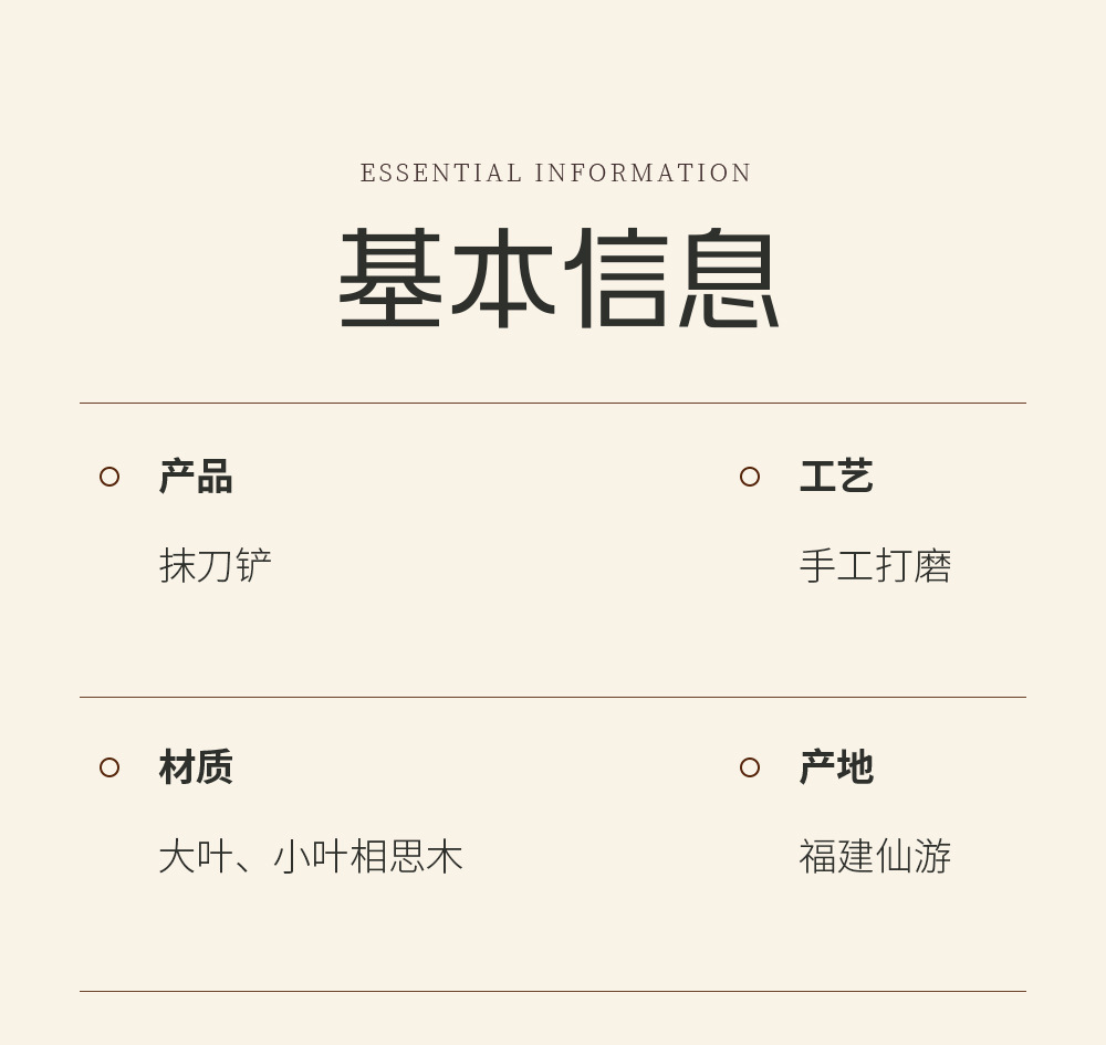 尺寸 1小叶20*6抹刀铲,2小叶25.5*4抹刀铲,3小叶28.*5.5抹刀铲,4小叶35*6.5抹刀铲,5小叶35*6.5抹刀铲,6大叶25.5*3.5抹刀铲,7大叶23.5*5抹刀铲,8大叶26*6抹刀铲,9大叶三线铲33.5*6,10大叶33.5*6抹刀铲,相思木收纳桶13*8.5