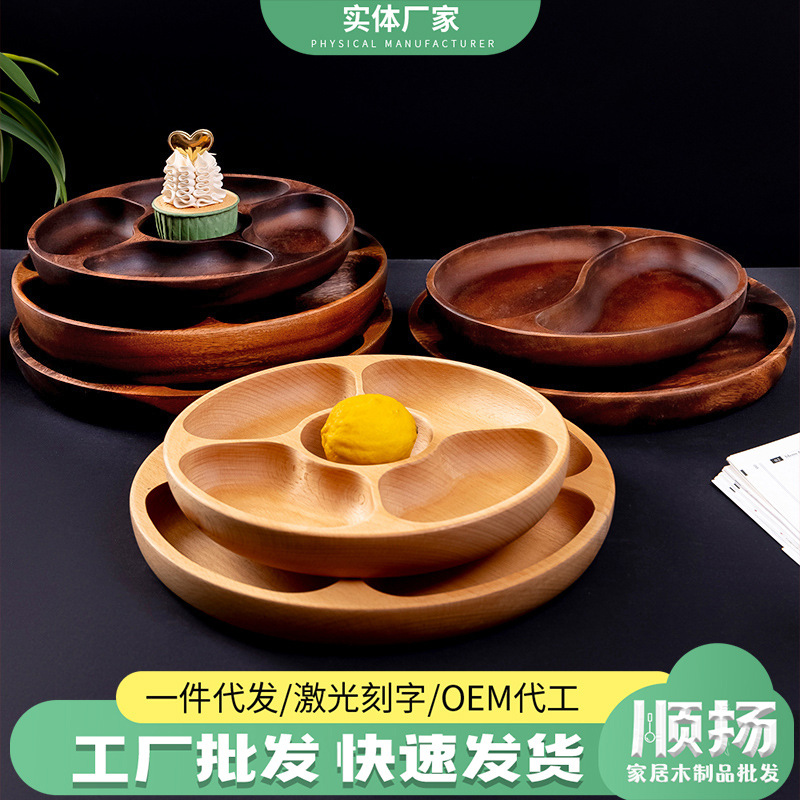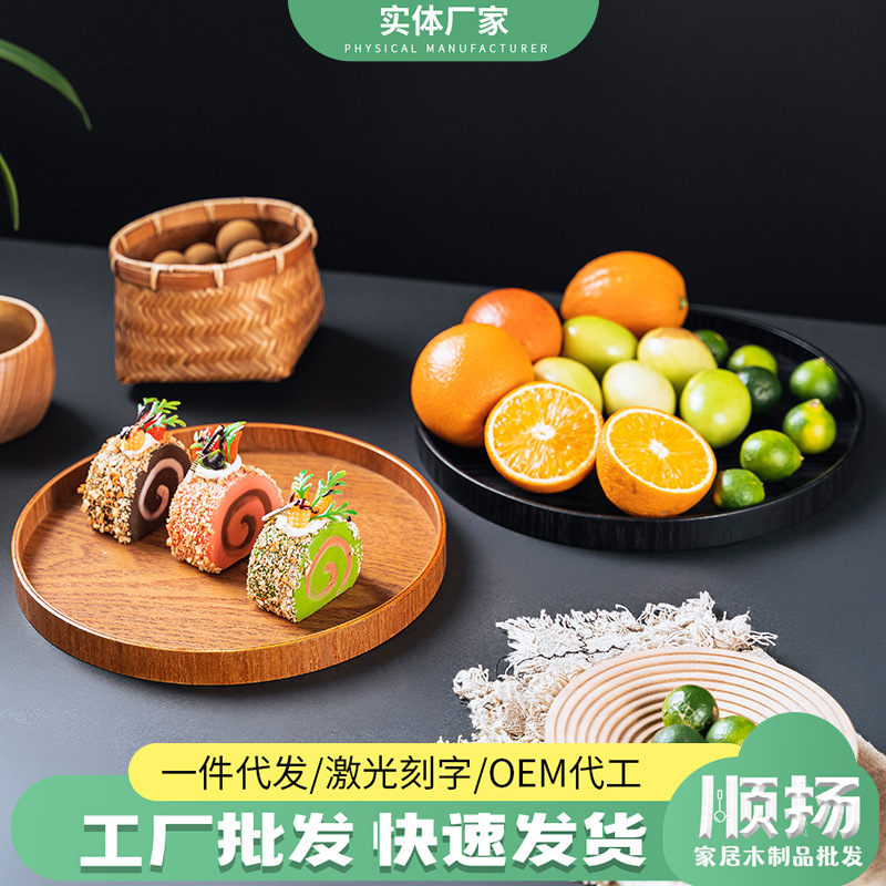 家庭用リビングデスクトップフルーツ皿日本式トレー曲柳木円形皿ホテルトレー茶皿卸売り