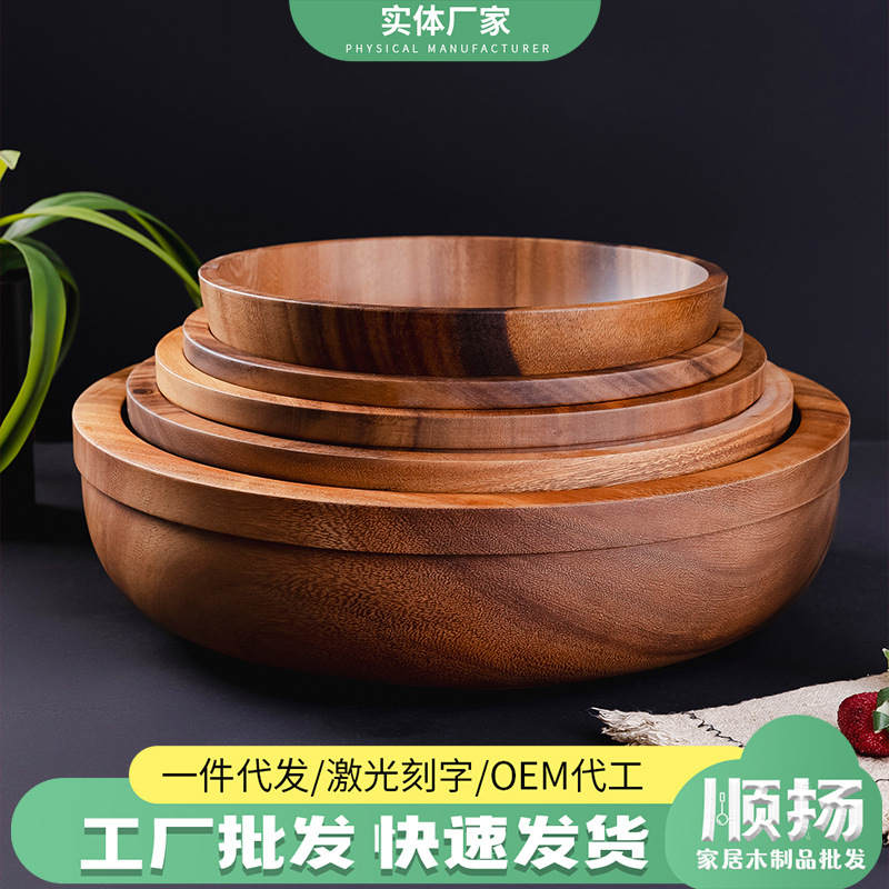 ケヤキのキムチの碗の大きいサイズの木の一体の韓国式のサラダの碗のアカシアの木は柄の泡の碗の工場の卸売りがあります。