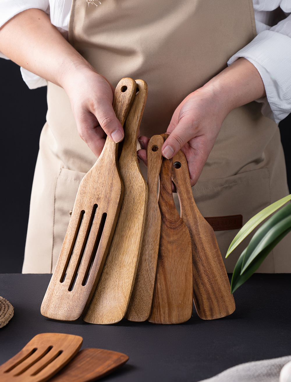 国境を越えたアカシアの木のアマゾンの木のシャベルの炒め物の鍋のシャベルの濾過の食事の台所のスプーンのスプーンのスプーンのセット