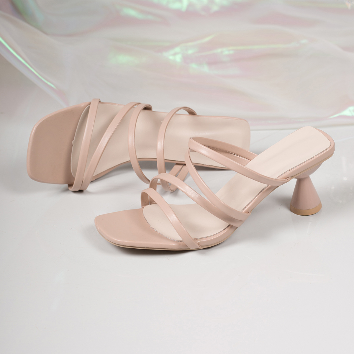 大きいサイズの外国貿易ヨーロッパとアメリカのファッションの女性用スリッパ、女性用ハイヒールスリッパ、女性用ワンラインスクエアトゥスティレットヒールサンダル