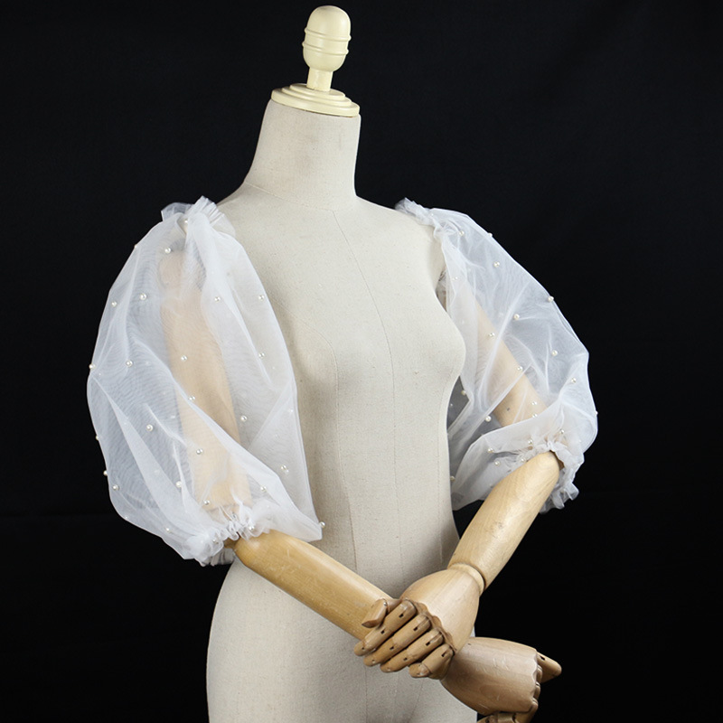 花嫁の肩のアクセサリー、白い袖、パールメッシュ、ワンレイヤードレス、ウェディングドレス、大きな腕をカバーし、スリムに見えるフェイクスリーブ